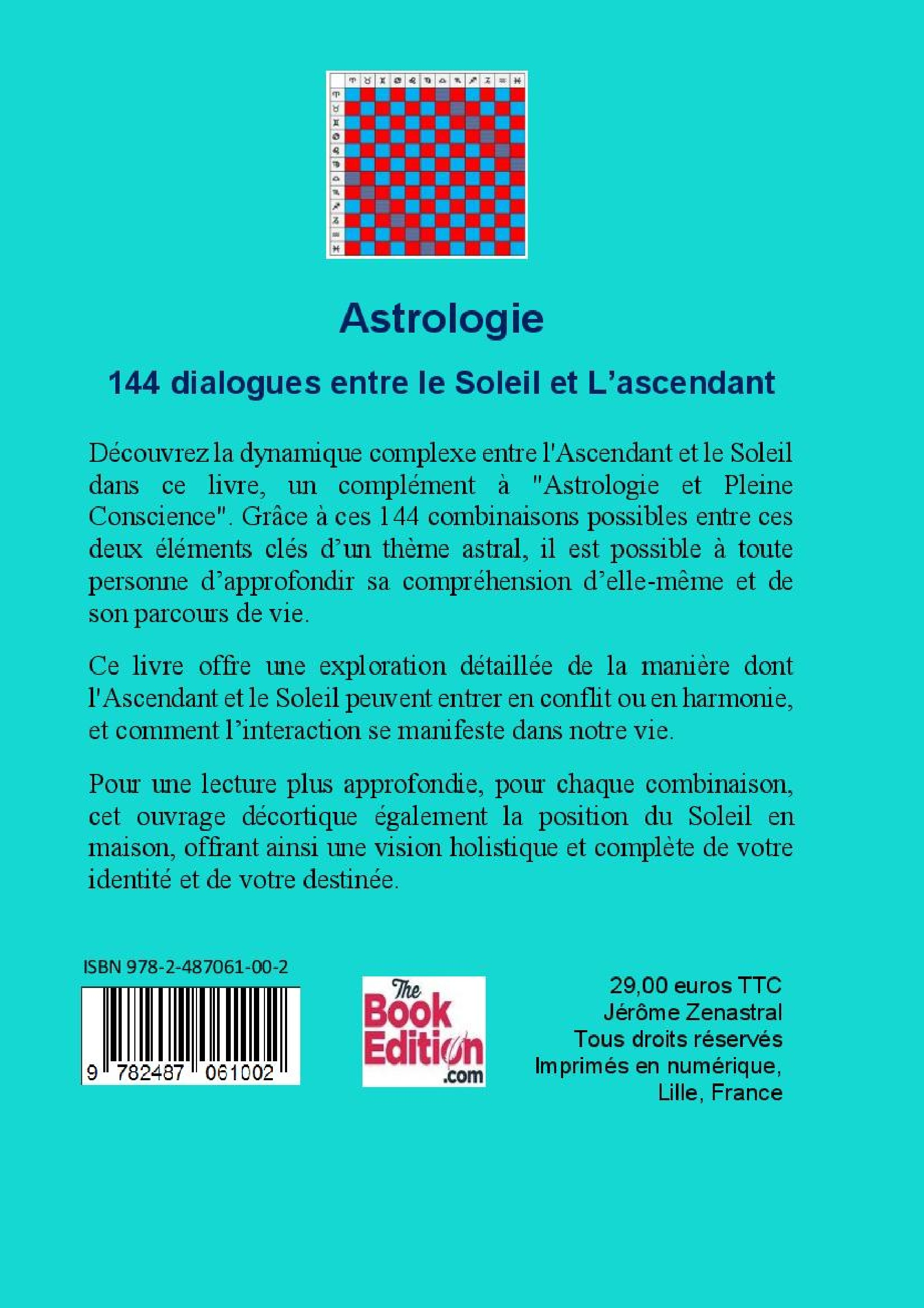 Grâce aux 144 combinaisons possibles entre le Soleil et l'Ascendant d’un thème astral, il est possible pour chacun d’approfondir sa compréhension de soi et de son chemin de vie. Ce livre propose une exploration détaillée de la manière dont l'Ascendant et le Soleil se complètent ou créent des tensions, et comment cette interaction influence notre existence. Outre la dynamique entre le signe du Soleil et l'Ascendant, cet ouvrage considère également les aspects de tension liés à la position du Soleil en signe. Pour chaque combinaison, l'analyse inclut aussi la position du Soleil en maison. Plus d’une centaine de célébrités viennent illustrer ces combinaisons, enrichissant le contenu par des exemples concrets et variés.