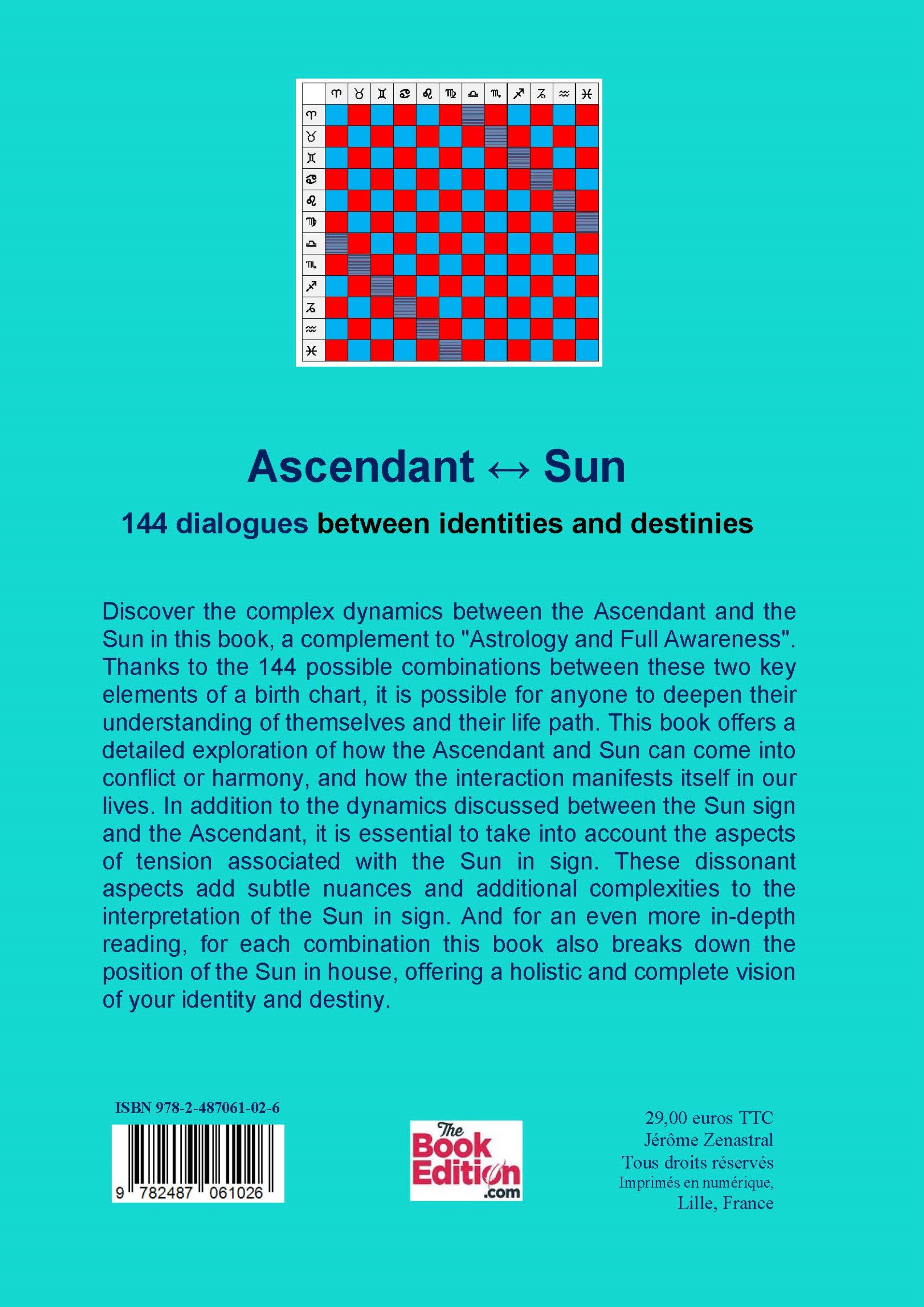 Discover the complex dynamics between the Ascendant and the Sun in this book. Thanks to the 144 possible combinations between these two key elements of a birth chart, it is possible for anyone to deepen their understanding of themselves and their life path. This book offers a detailed exploration of how the Ascendant and Sun can come into conflict or harmony, and how the interaction manifests itself in our lives. In addition to the dynamics discussed between the Sun sign and the Ascendant, it is essential to take into account the aspects of tension associated with the Sun in sign. And for an even more in-depth reading, for each combination this book also breaks down the position of the Sun in house.