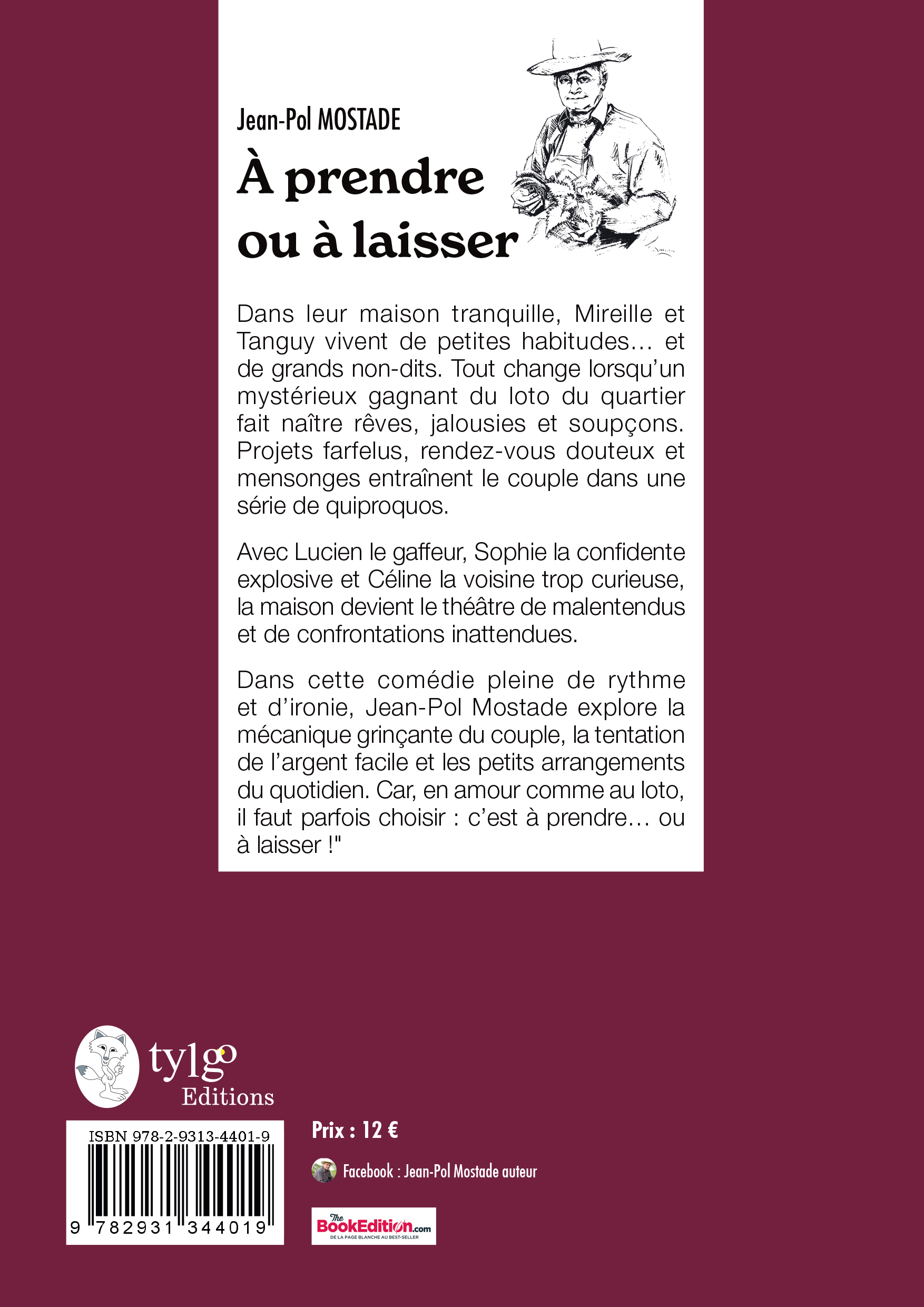 Dans cette comédie pleine de rythme et d’ironie, Jean-Pol Mostade explore la mécanique grinçante du couple et la tentation de l’argent facile. Car, en amour comme au loto, il faut parfois choisir : c’est à prendre… ou à laisser !"
