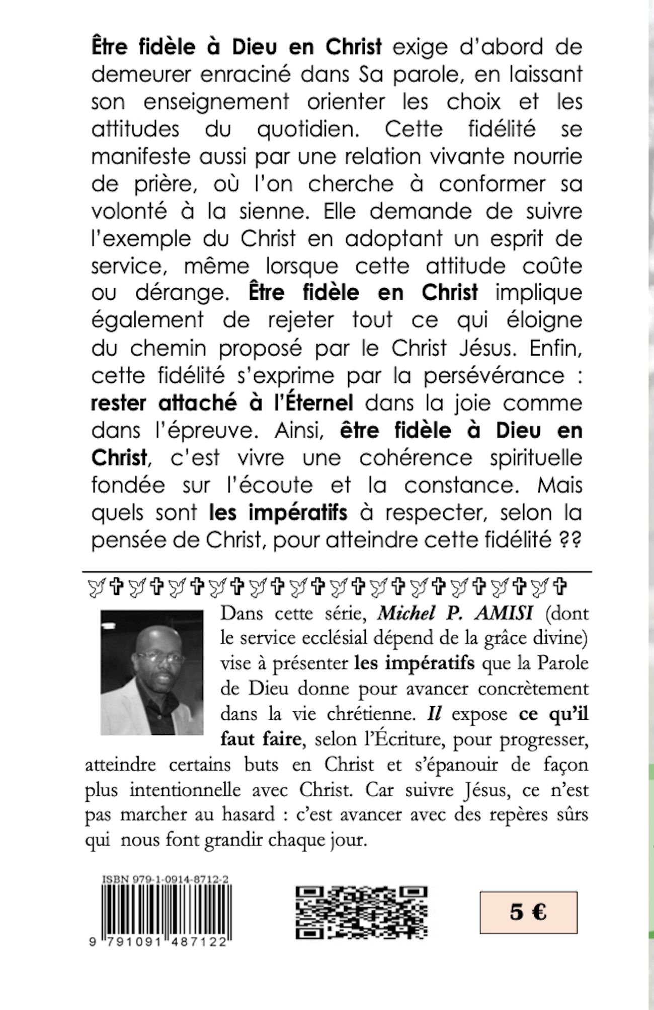 Être fidèle à Dieu en Christ exige d’abord de demeurer enraciné dans Sa parole, en laissant son enseignement orienter les choix et les attitudes du quotidien. Cette fidélité se manifeste aussi par une relation vivante nourrie de prière, où l’on cherche à conformer sa volonté à la sienne. Elle demande de suivre l’exemple du Christ en adoptant un esprit de service, même lorsque cette attitude coûte ou dérange. Être fidèle en Christ implique également de rejeter tout ce qui éloigne du chemin proposé par le Christ Jésus.