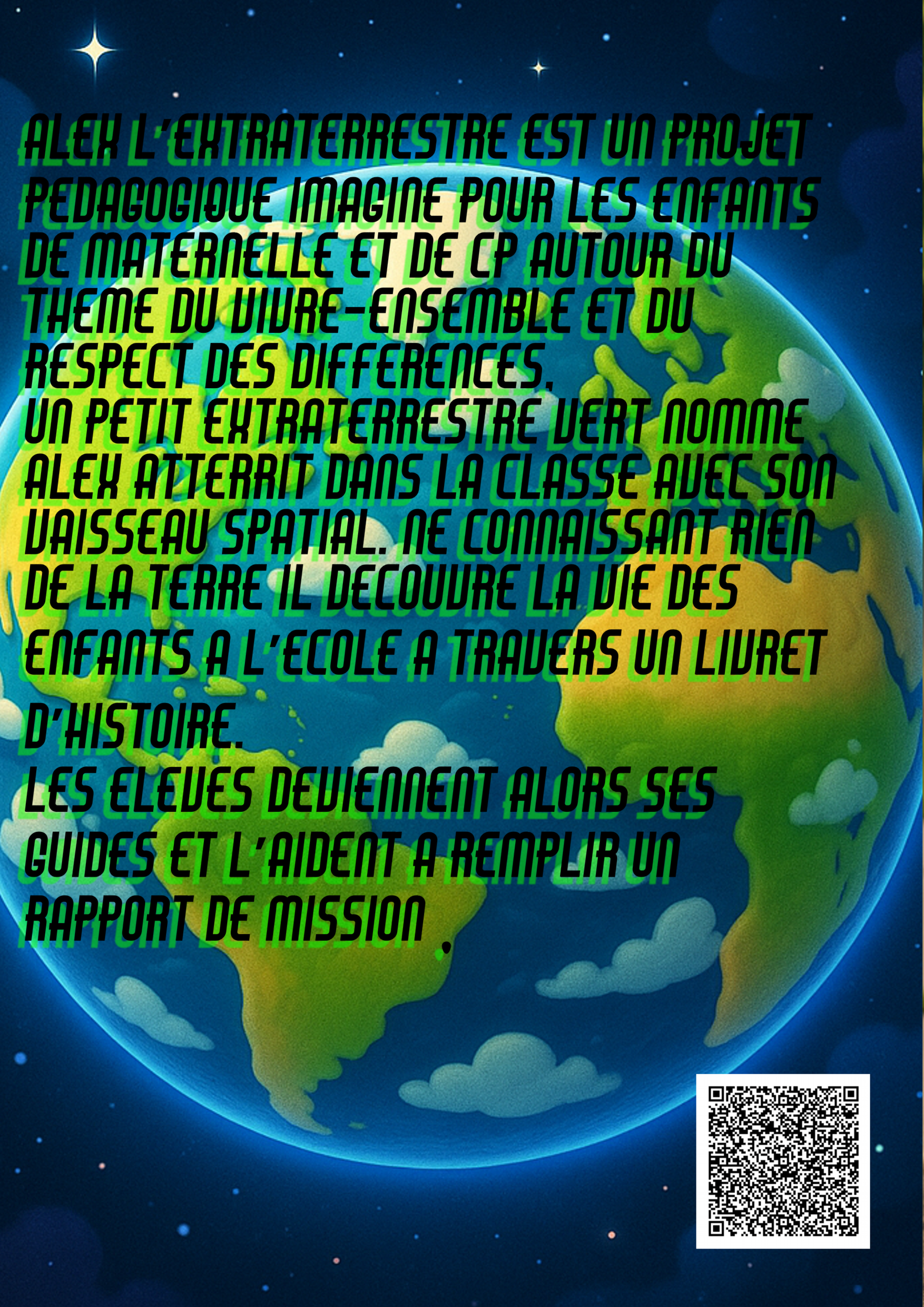Alex l’extraterrestre est un projet pédagogique imaginé pour les enfants de maternelle et de CP, autour du thème du vivre-ensemble et du respect des différences.