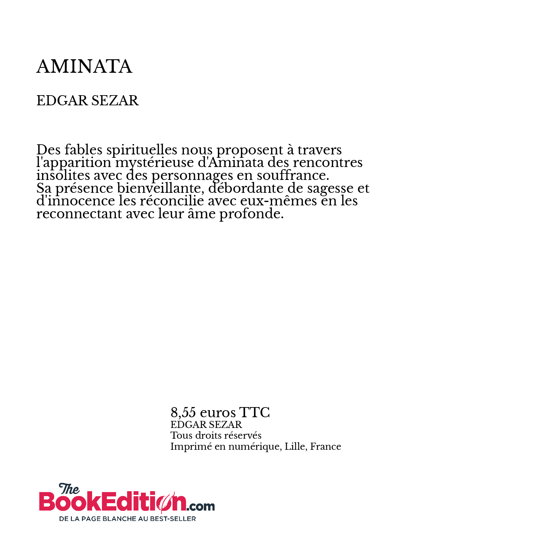 Des fables spirituelles nous proposent à travers l'apparition mystérieuse d'Aminata des rencontres insolites avec des personnages en souffrance. Sa présence bienveillante, débordante de sagesse et d'innocence les réconcilie avec eux-mêmes en les reconnectant avec leur âme profonde.
