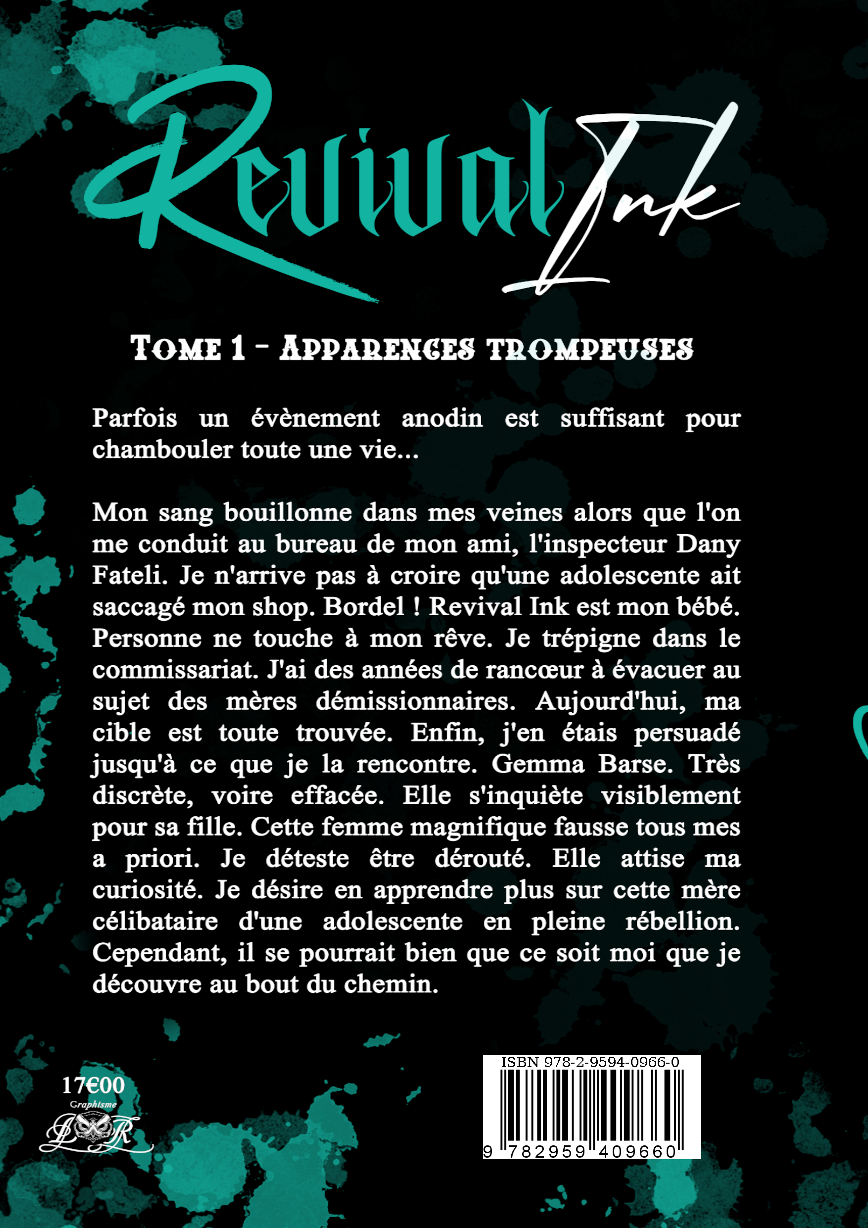 Mon sang bouillonne dans mes veines alors que l'on me conduit au bureau de l'inspecteur Dany Fateli. Je n'arrive pas à croire qu'une adolescente ait saccagé mon shop. Revival Ink est mon bébé. Personne ne touche à mon rêve. J'ai des années de rancœur à évacuer au sujet des mères démissionnaires et ma cible est toute trouvée. Enfin, j'en étais persuadé jusqu'à ce que je la rencontre. Gemma Barse. Très discrète, voire effacée, elle s'inquiète visiblement pour sa fille. Cette femme magnifique fausse tous mes a priori. Elle attise ma curiosité. Je désire en apprendre plus sur cette mère célibataire d'une adolescente en pleine rébellion. Cependant, il se pourrait bien que ce soit moi que je découvre au bout du chemin.