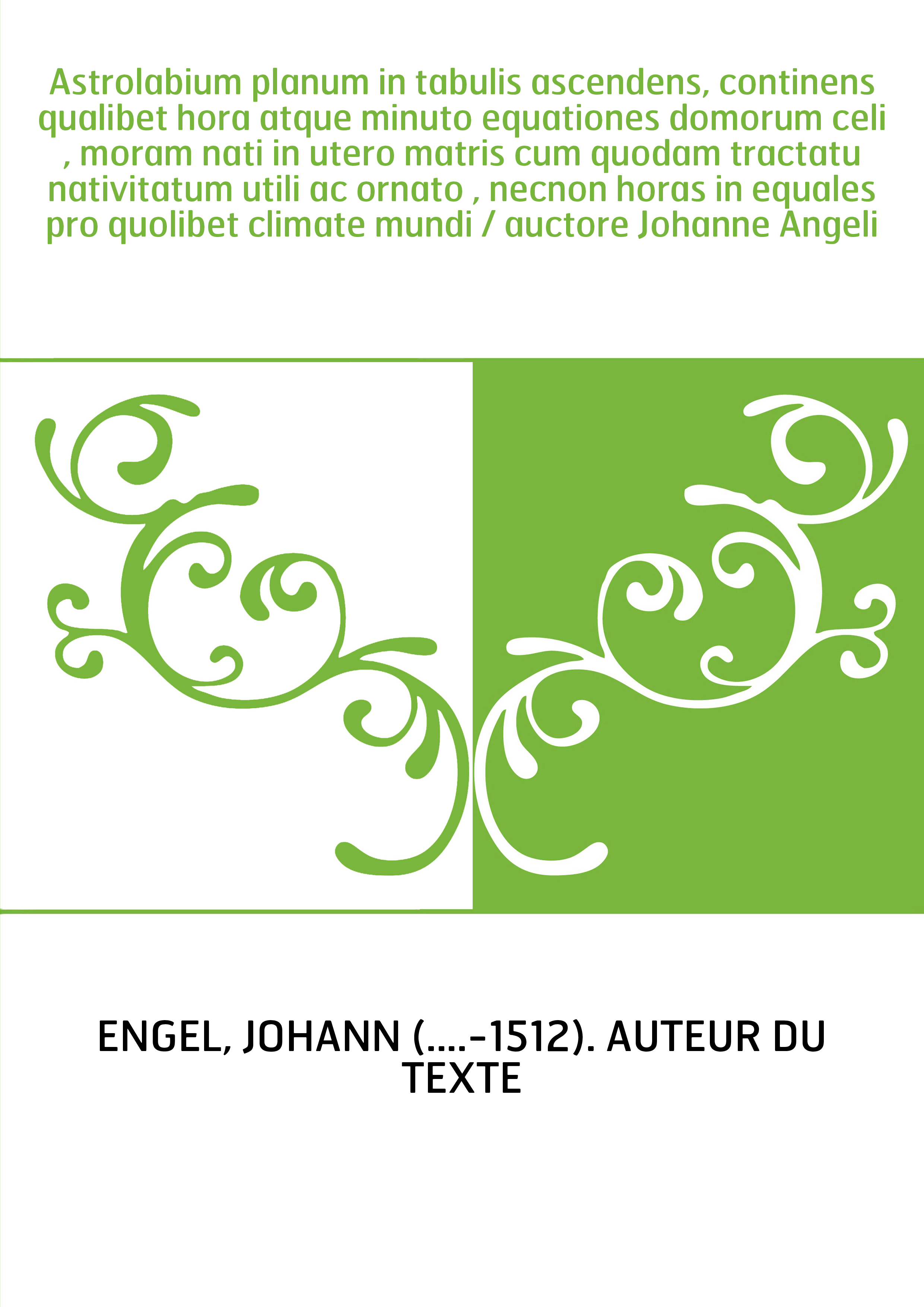 Engel, Johann (....-1512). Auteur du texte