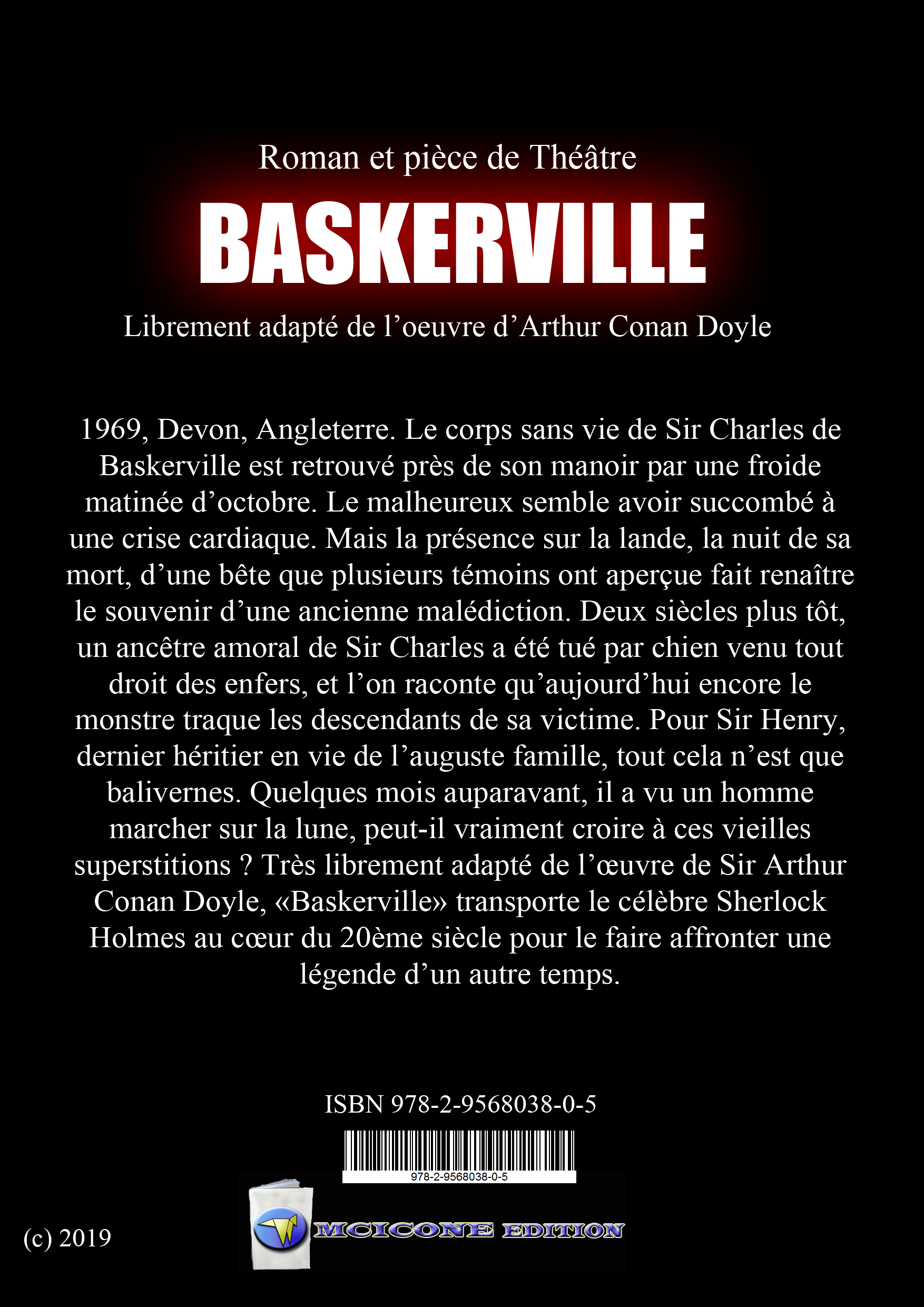 Très librement adapté de l’œuvre de Sir Arthur Conan Doyle, «Baskerville» transporte le célèbre Sherlock Holmes au cœur du 20ème siècle pour le faire affronter une légende d’un autre temps. Le livre se décompose en deux partie: le roman puis l'adaptation de celui-ci en pièce de Théâtre.