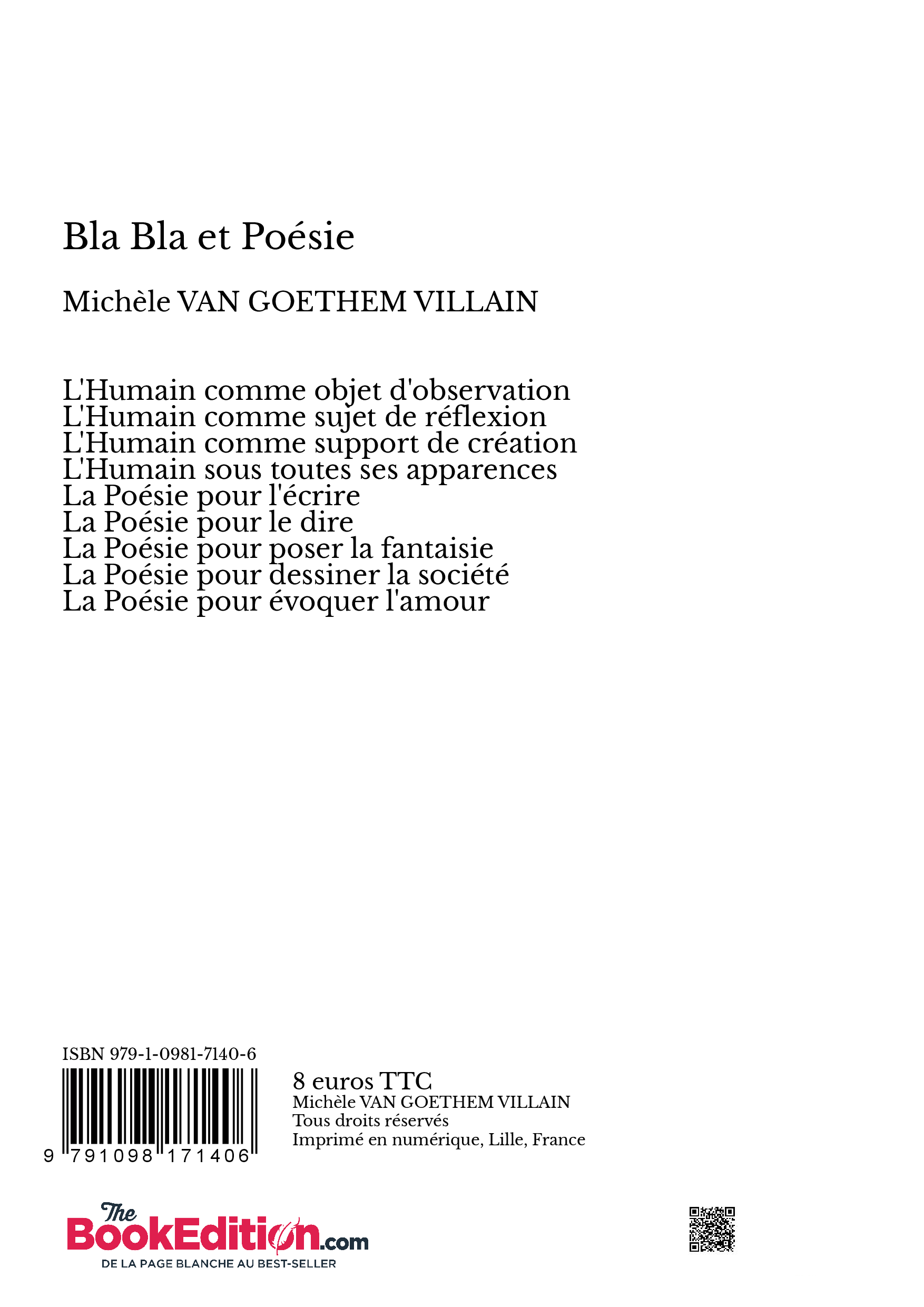 L'Humain comme objet d'observation L'Humain comme sujet de réflexion L'Humain comme support de création L'Humain sous toutes ses apparences La Poésie pour l'écrire La Poésie pour le dire La Poésie pour poser la fantaisie La Poésie pour dessiner la société La Poésie pour évoquer l'amour