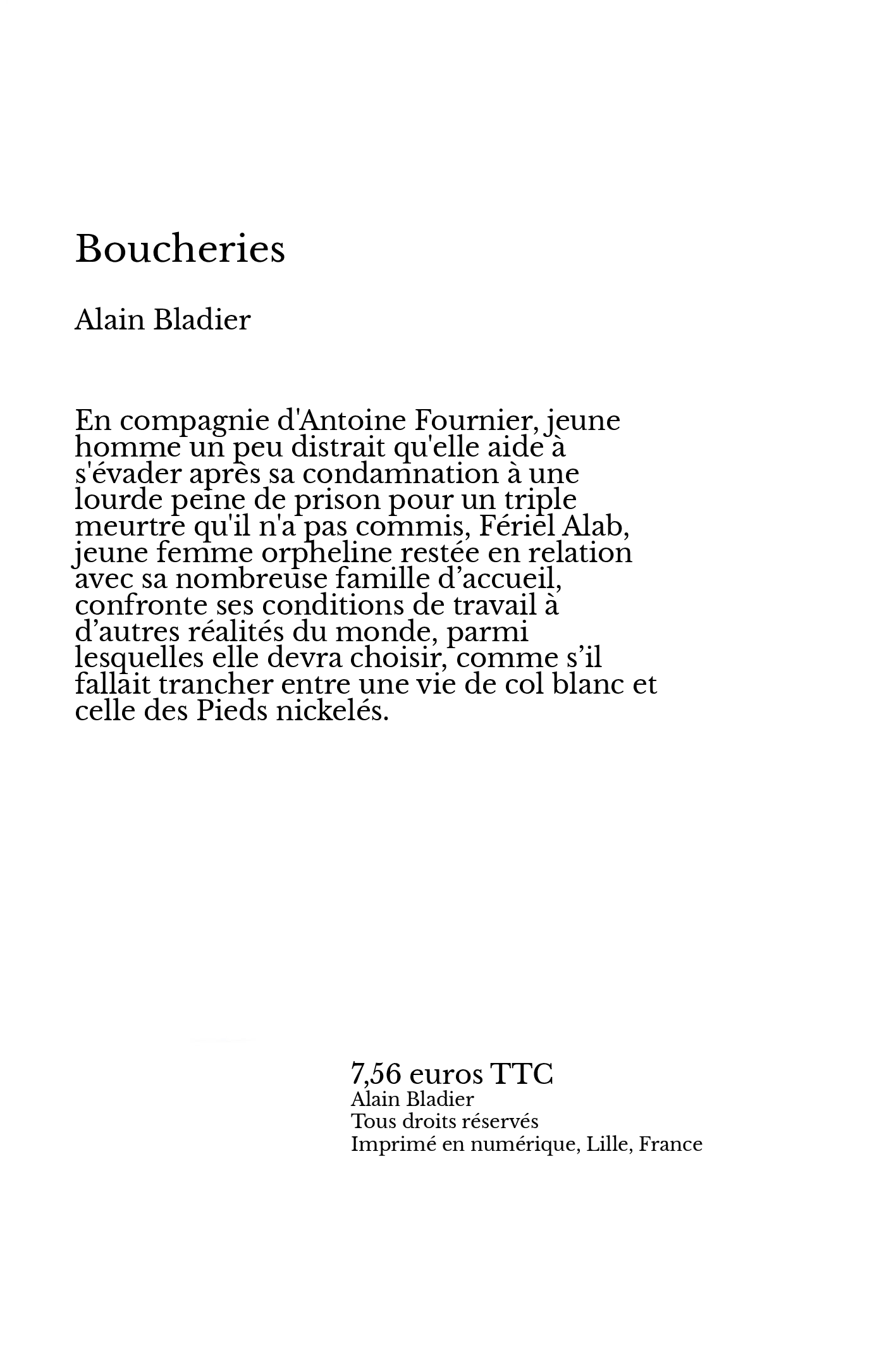 En compagnie d'Antoine Fournier, jeune homme un peu distrait qu'elle aide à s'évader après sa condamnation à une lourde peine de prison pour un triple meurtre qu'il n'a pas commis, Fériel Alab, jeune femme orpheline restée en relation avec sa nombreuse famille d’accueil, confronte ses conditions de travail à d’autres réalités du monde, parmi lesquelles elle devra choisir, comme s’il fallait trancher entre une vie de col blanc et celle des Pieds nickelés.