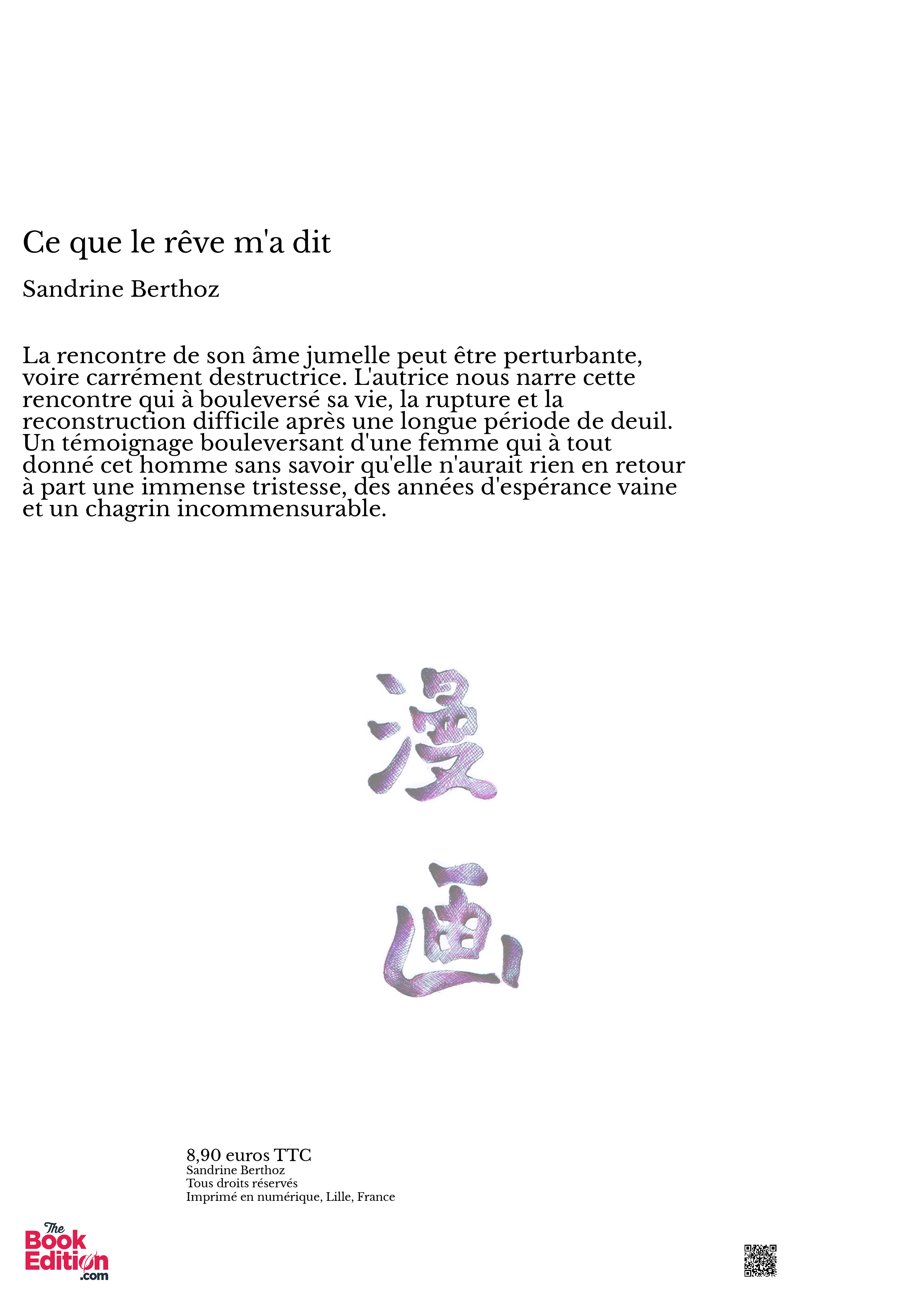 La rencontre de son âme jumelle peut être perturbante, voire carrément destructrice. L'autrice nous narre cette rencontre qui à bouleversé sa vie, la rupture et la reconstruction difficile après une longue période de deuil. Un témoignage bouleversant d'une femme qui à tout donné cet homme sans savoir qu'elle n'aurait rien en retour à part une immense tristesse, des années d'espérance vaine et un chagrin incommensurable.