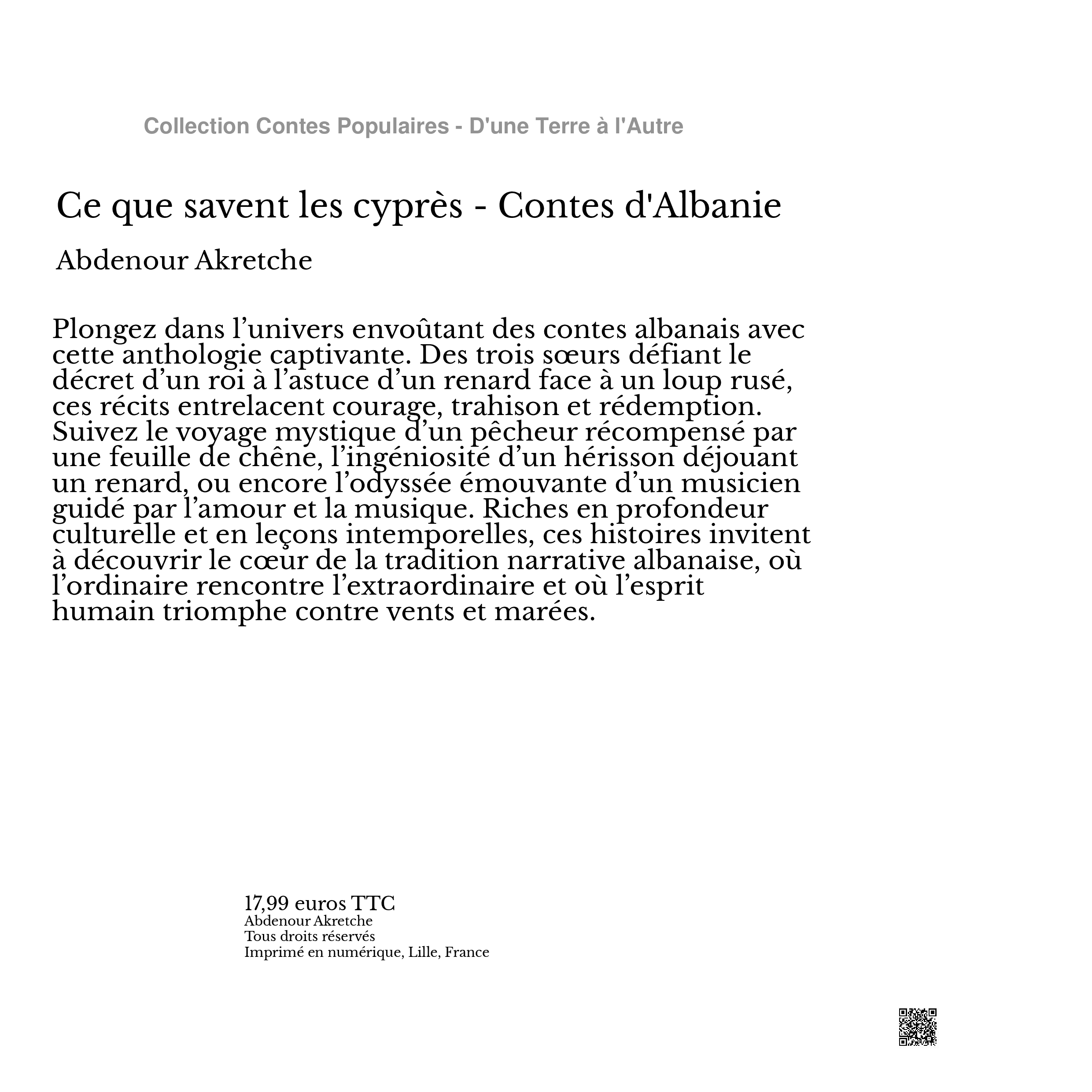 Plongez dans l’univers envoûtant des contes albanais avec cette anthologie captivante. Des trois sœurs défiant le décret d’un roi à l’astuce d’un renard face à un loup rusé, ces récits entrelacent courage, trahison et rédemption. Suivez le voyage mystique d’un pêcheur récompensé par une feuille de chêne, l’ingéniosité d’un hérisson déjouant un renard, ou encore l’odyssée émouvante d’un musicien guidé par l’amour et la musique. Riches en profondeur culturelle et en leçons intemporelles, ces histoires invitent à découvrir le cœur de la tradition narrative albanaise, où l’ordinaire rencontre l’extraordinaire et où l’esprit humain triomphe contre vents et marées.