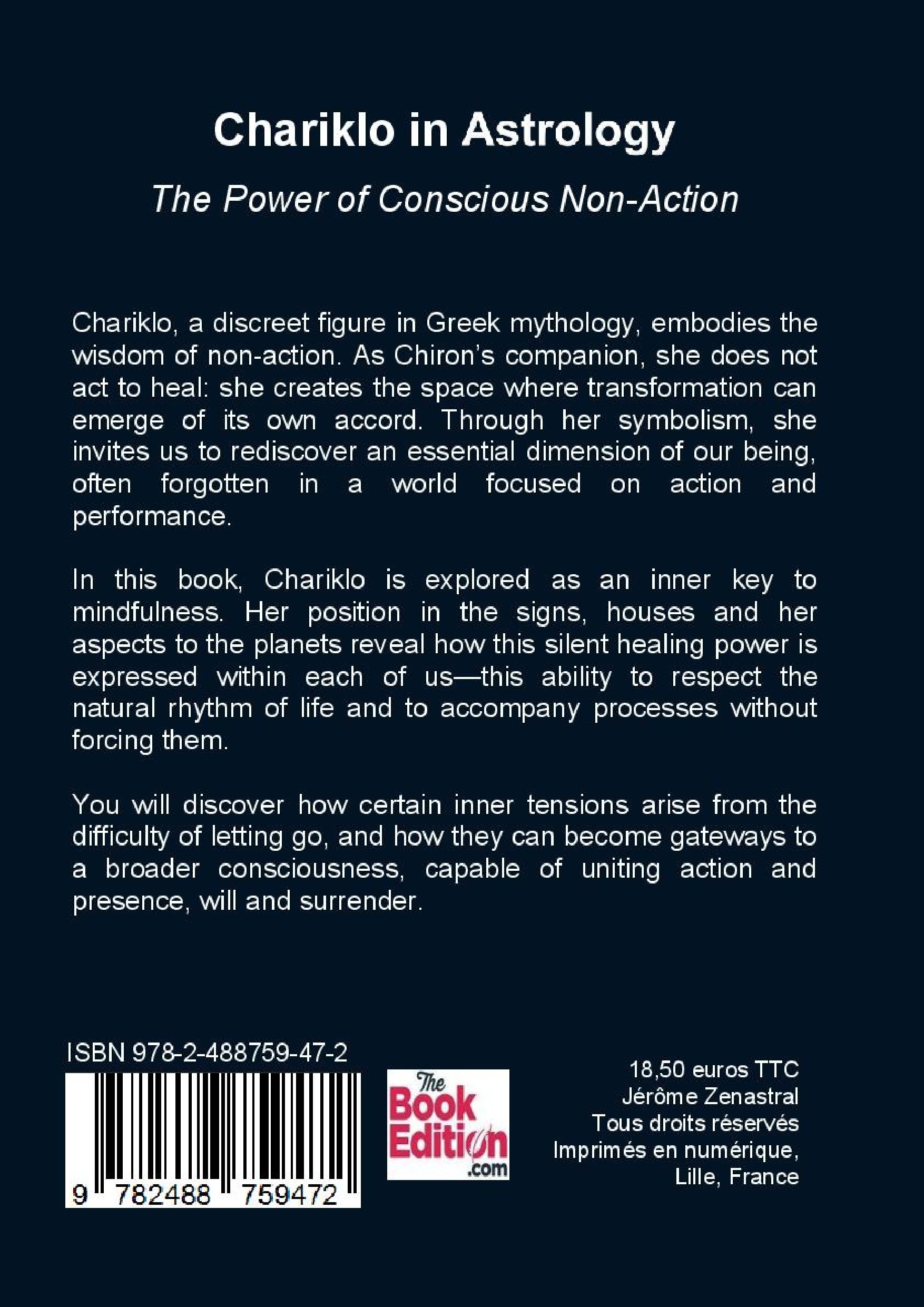 In this book, Chariklo is explored as an inner key to mindfulness. Her position in the signs, houses and her aspects to the planets reveal how this silent healing power is expressed within each of us—this ability to respect the natural rhythm of life and to accompany processes without forcing them.