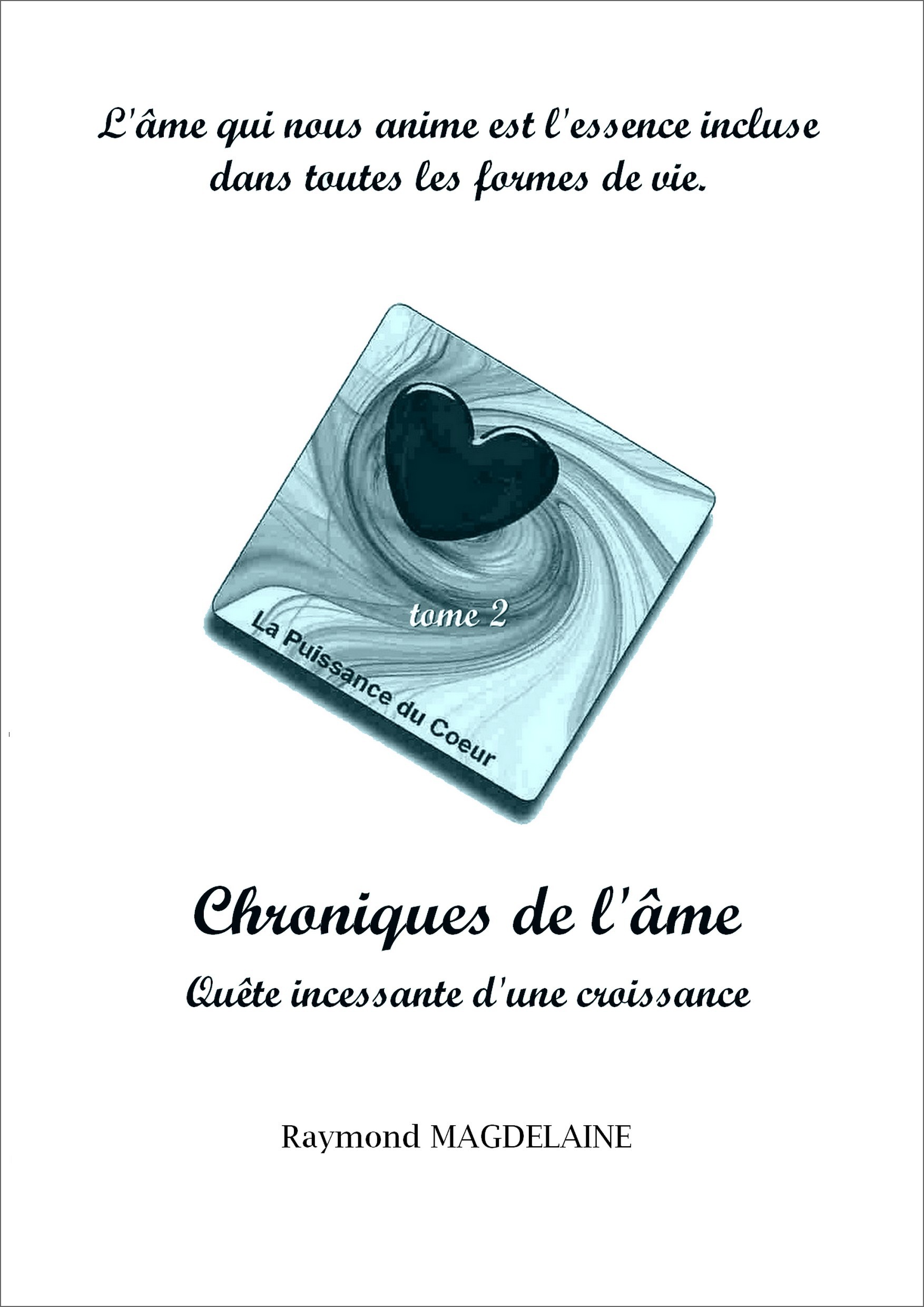 Je me suis enfin décidé à publier, un nombre qui ne cesse de croître de chroniques, que j’ai regroupées ici sous le titre des « Chroniques de l’âme : tome 2 ». L’âme hors y disparaît pour rendre à l’âme toute la place qu’elle occupe en fait, dans et hors du corps… et j’ajouterais même qu’elle est cette âme issue de l’univers (pour ne pas dire dieu) et qu’elle anime toute chose, toute forme, même celles qui nous donnent l’impression de ne pas avoir d’âme ! Elles ont évolué en même temps que moi, elles contiennent toujours les filtres dont mon âme ne s’est pas encore défaite, mais il me semble, c’est mon point de vue, qu’ici-bas ils laissent plus facilement entrer la lumière, lumière vers laquelle nous tendons toutes.