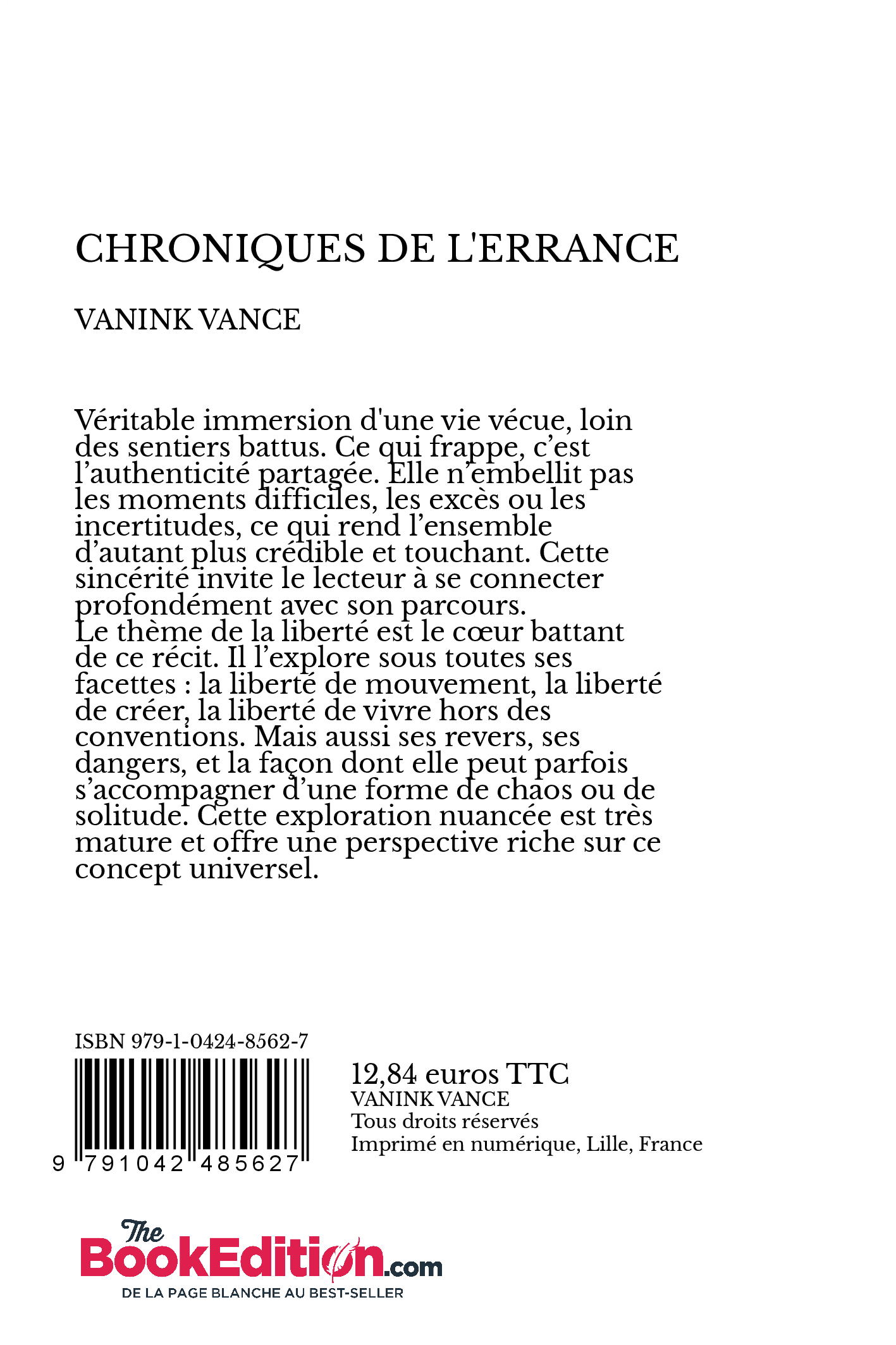 Véritable immersion d'une vie vécue, loin des sentiers battus. Ce qui frappe, c’est l’authenticité partagée. Elle n’embellit pas les moments difficiles, les excès ou les incertitudes, ce qui rend l’ensemble d’autant plus crédible et touchant. Cette sincérité invite le lecteur à se connecter profondément avec son parcours.