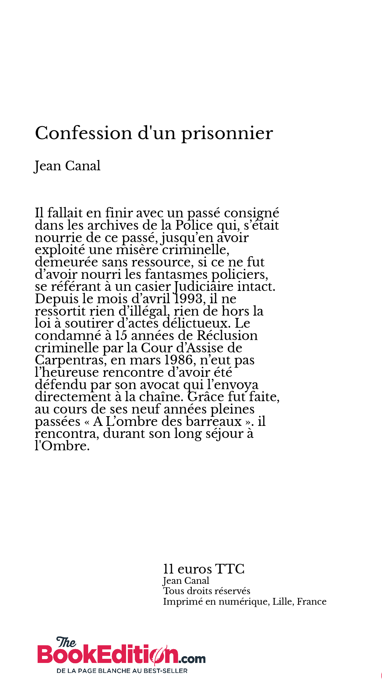 Il fallait en finir avec un passé consigné dans les archives de la Police qui, s’était nourrie de ce passé, jusqu’en avoir exploité une misère criminelle, demeurée sans ressource, si ce ne fut d’avoir nourri les fantasmes policiers, se référant à un casier Judiciaire intact. Depuis le mois d’avril 1993, il ne ressortit rien d’illégal, rien de hors la loi à soutirer d’actes délictueux. Le condamné à 15 années de Réclusion criminelle par la Cour d’Assise de Carpentras, en mars 1986, n’eut pas l’heureuse rencontre d’avoir été défendu par son avocat qui l’envoya directement à la chaîne. Grâce fut faite, au cours de ses neuf années pleines passées « A L’ombre des barreaux ». il rencontra, durant son long séjour à l'Ombre.