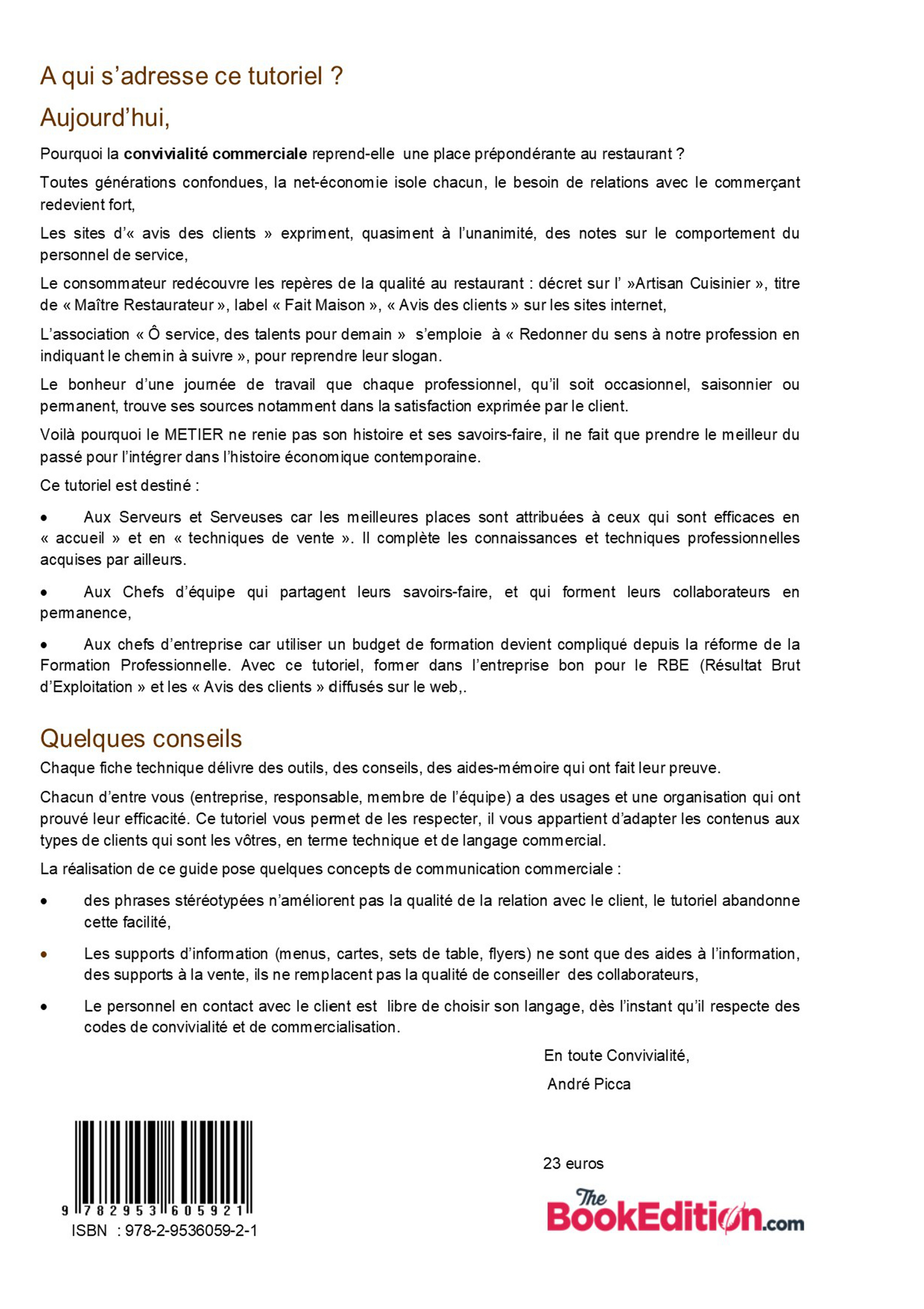 Je suis devenu tutoriel, support de formation que toute entreprise devrait utiliser, tuto qui devrait inspirer tout collaborateur du restaurant pour faire face à toutes les situations, parce que « La qualité de l’assiette attire les clients, la qualité du SERVICE les retient ».
