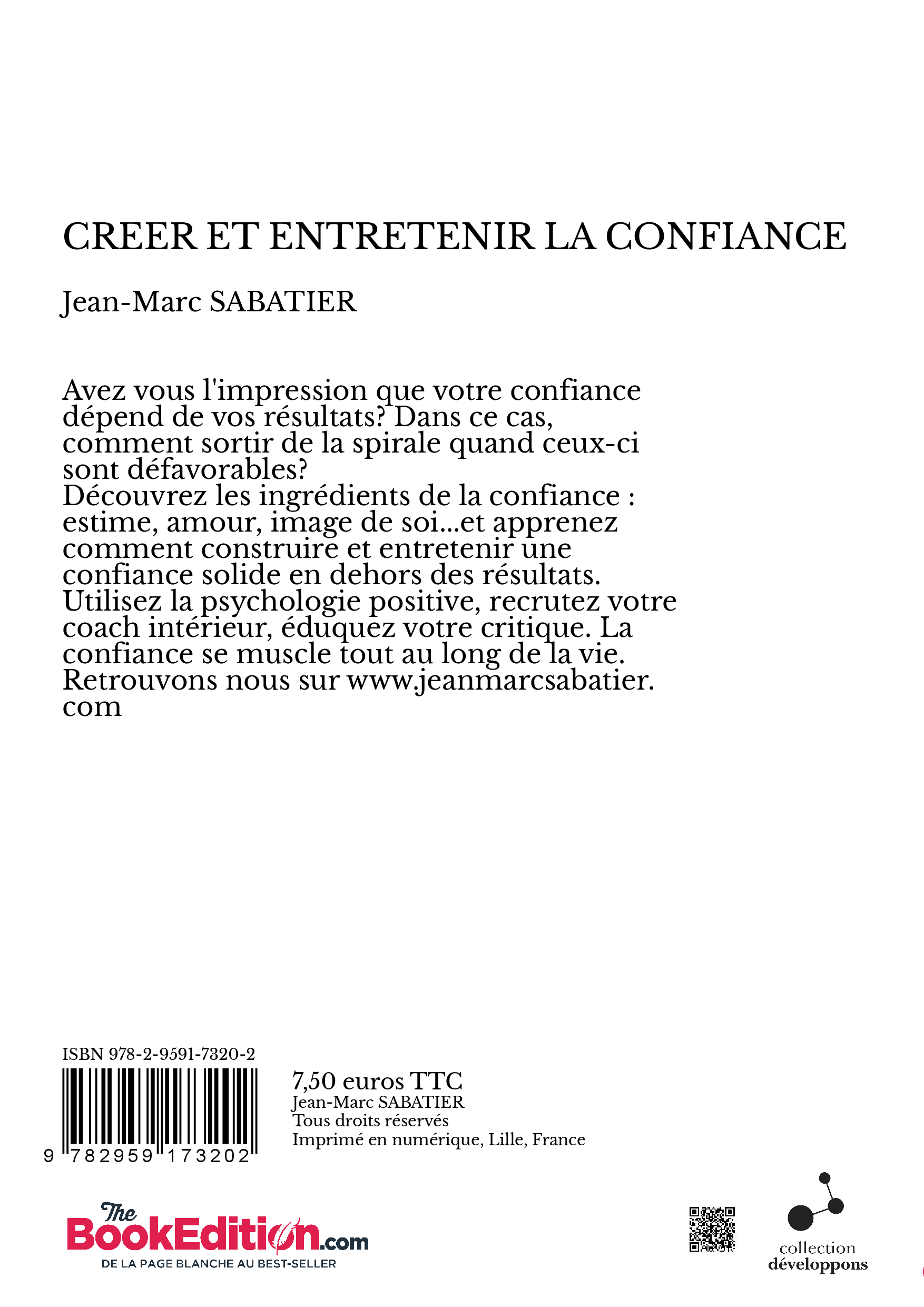 Avez vous l'impression que votre confiance dépend de vos résultats? Dans ce cas, comment sortir de la spirale quand ceux-ci sont défavorables? Découvrez les ingrédients de la confiance : estime, amour, image de soi...et apprenez comment construire et entretenir une confiance solide en dehors des résultats. Utilisez la psychologie positive, recrutez votre coach intérieur, éduquez votre critique. La confiance se muscle tout au long de la vie.