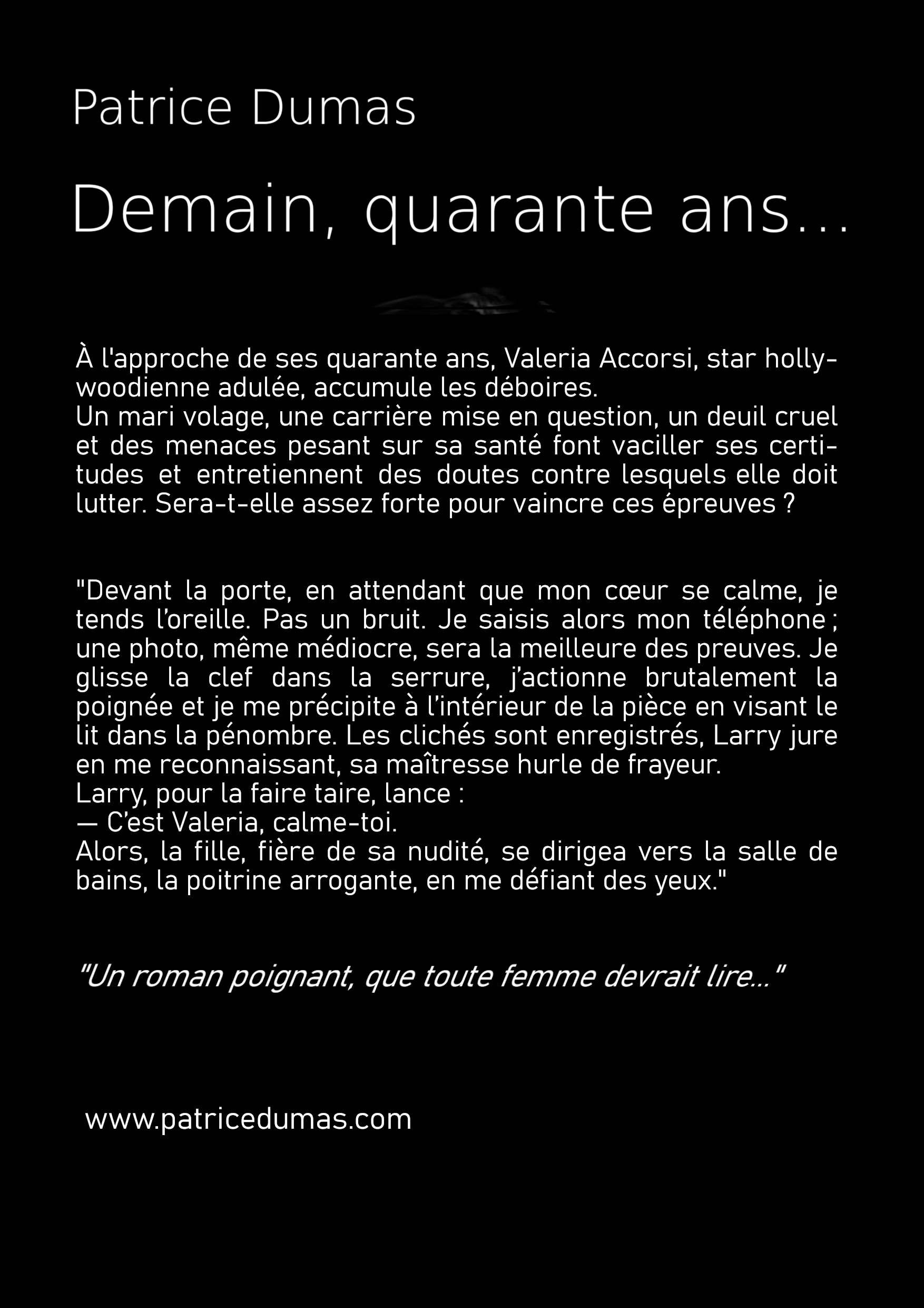 "On dit qu’au moment ultime, le mourant sur son lit de douleur voit, en un instant, sa vie défiler sous ses yeux. Les bons, les mauvais épisodes se succèdent en un éclair ; amis et ennemis se fondent dans les cendres d’une existence qui s’éteint.