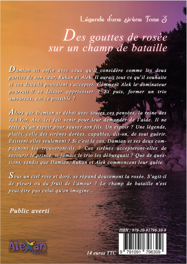 Damian vit enfin avec ceux qu'il considère comme les deux parties de son c??ur, Rukan et Alek. Il aurait tout ce qu'il souhaite si ces deux-là pouvaient s'accepter. Comment Alek le dominateur pourrait-il se laisser apprivoiser ? Et puis, former un trio amoureux, est-ce possible ?