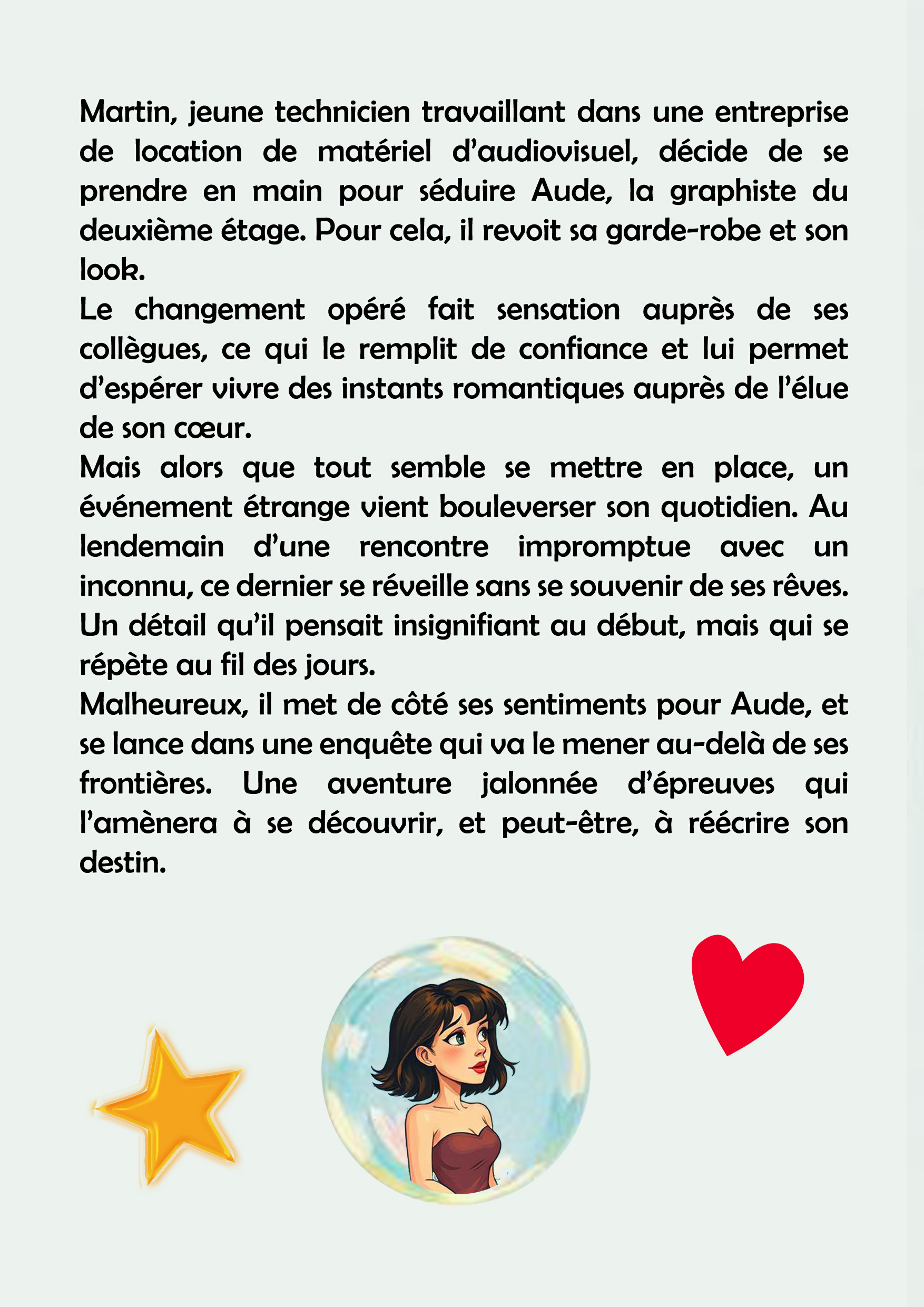 Malheureux, il met de côté ses sentiments pour Aude, et se lance dans une folle enquête. Une aventure jalonnée d’épreuves qui l’amènera à se découvrir et à réécrire son destin.