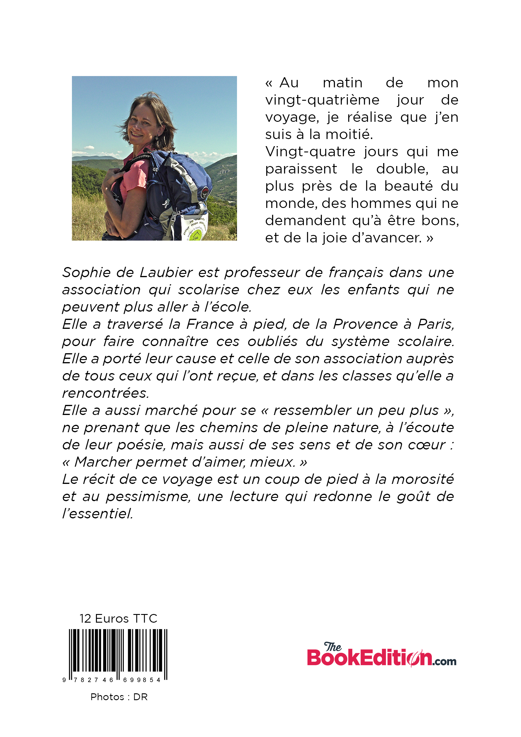 Ce récit de Sophie nous transporte avec elle, pas à pas, dans un univers bienfaisant de poésie et de spiritualité. Chemin faisant et traversant la France, ses rencontres avec la générosité, l'attention à l'autre, l'intelligence du cœur sont autant de petites graines d'espoir pour les enfants malades et handicapés de Votre École Chez Vous. A lire d'urgence si vous vous sentez du vague à l'âme ! Isabelle