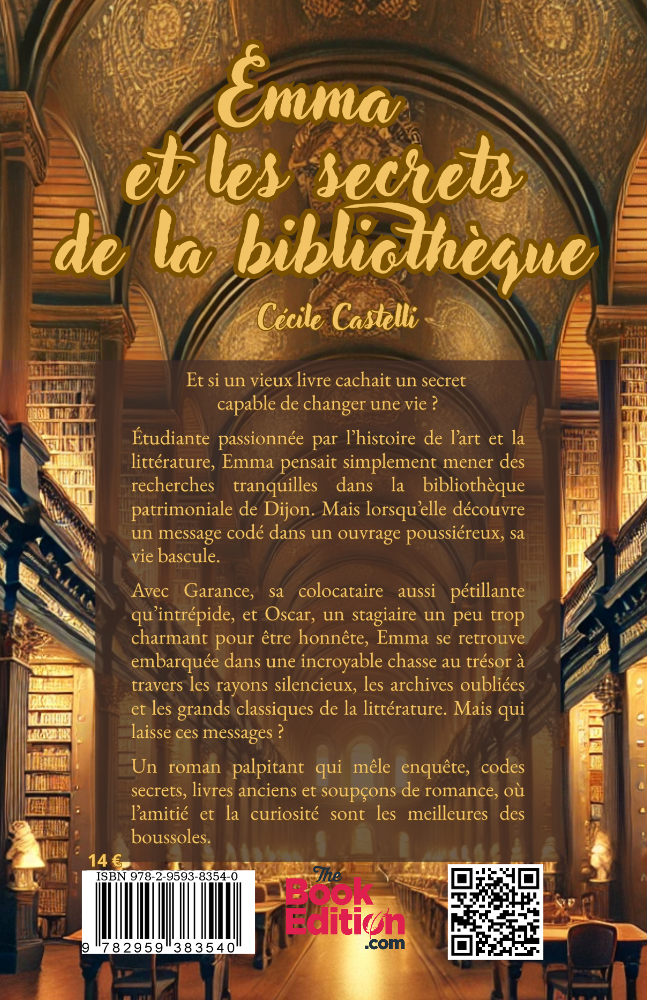 Étudiante passionnée par l’histoire de l’art et la littérature, Emma pensait simplement mener des recherches tranquilles dans la bibliothèque de Dijon. Mais lorsqu’elle découvre un message codé dans un ouvrage poussiéreux, sa vie bascule. Avec Garance, sa colocataire aussi pétillante qu’intrépide, et Oscar, un stagiaire un peu trop charmant pour être honnête, Emma se retrouve embarquée dans une incroyable chasse au trésor à travers les rayons silencieux, les archives oubliées et les grands classiques de la littérature. Mais qui laisse ces messages ?