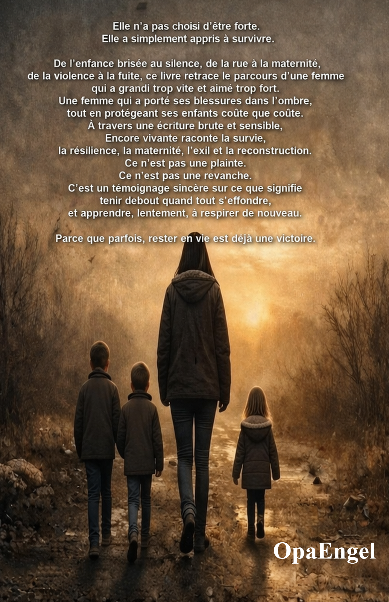 Entre blessures d’enfance, pertes et épreuves de la vie, l’auteure raconte un parcours marqué par la douleur mais aussi par la force de continuer. Malgré les tempêtes, certaines rencontres ont été des lumières dans l’obscurité. Ce témoignage sincère montre qu’après chaque chute, il est possible de se relever. Une histoire vraie de survie, de courage et d’espoir : celle d’une femme encore vivante.