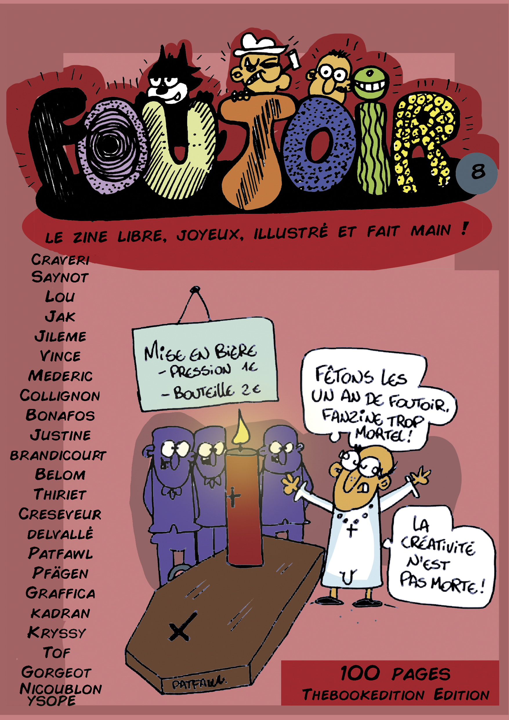Nous y voilà ! Le numéro 8 de Foutoir, le fanzine 50 % Bandes Dessinées inédites (Projets refusés, BD crées pour l'occasion) avec des travaux de Pascal Craveri, Lou, Tof, Pfägen, Jak, Morgane, Graffica, Vince, Krykry, Belom, Ysope, Delvallé, Jérome Gorgeot et Peter Patfawl. Et 50 % de chroniques culturelles sur des sujets non-médiatisés. Pas d'interviou, ce coup-ci mais une nouvelle chronique jazz et punchy de Médéric Collignon qui nous rejoint avec joie et un extrait du Silence d'Elise de Justine Brandicourt... 100 Pages de dingueries, de folies créatives et de liberté avec des chroniques habituelles pour l'anniversaire du fanzine ! Soyez donc nombreux à lire ce numéro explosif qui gagne à être connu ! Bonne lecture !