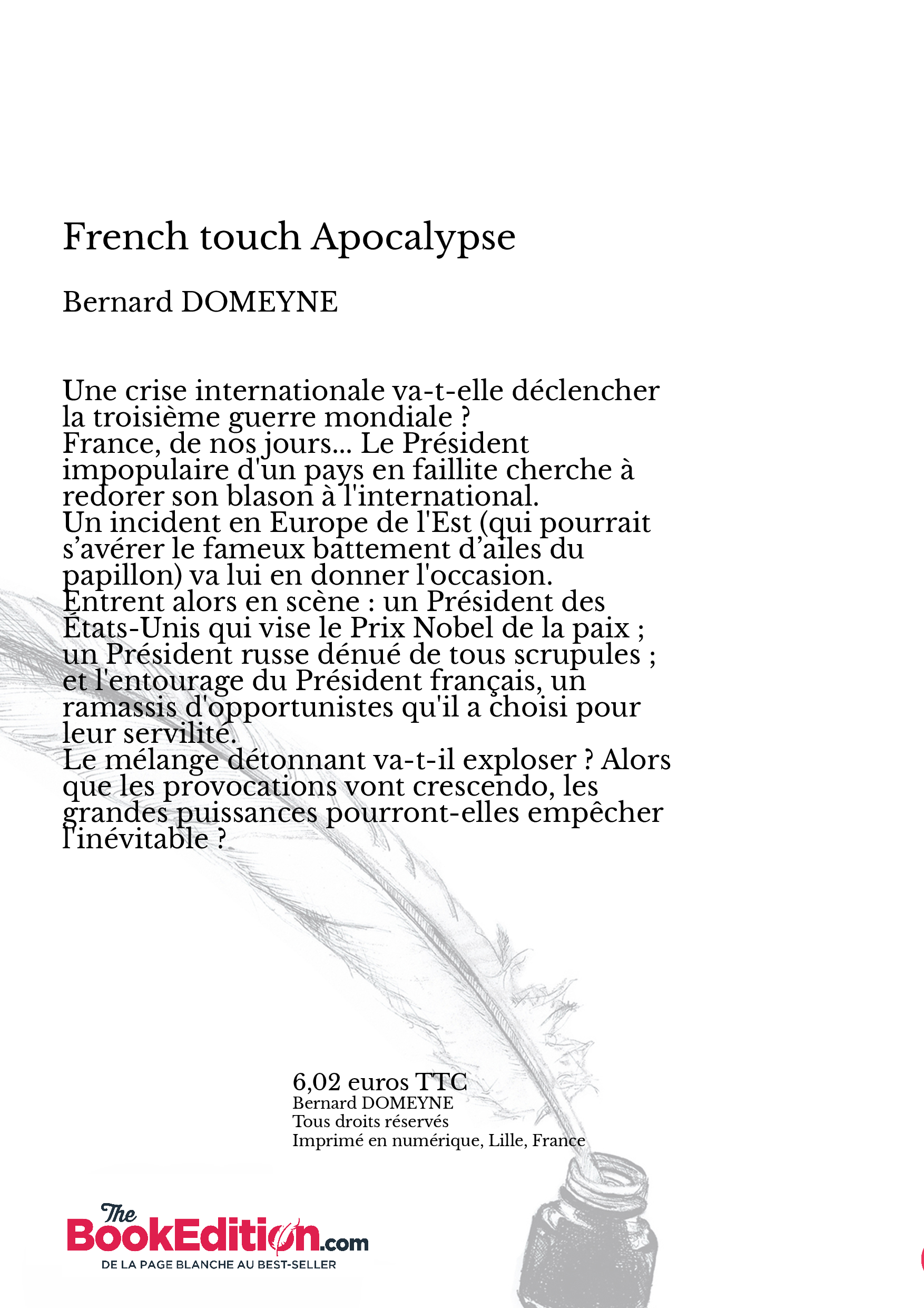 Entrent alors en scène : un Président des États-Unis qui vise le Prix Nobel de la paix ; un Président russe dénué de tous scrupules ; et l'entourage du Président français, un ramassis d'opportunistes qu'il a choisi pour leur servilité.