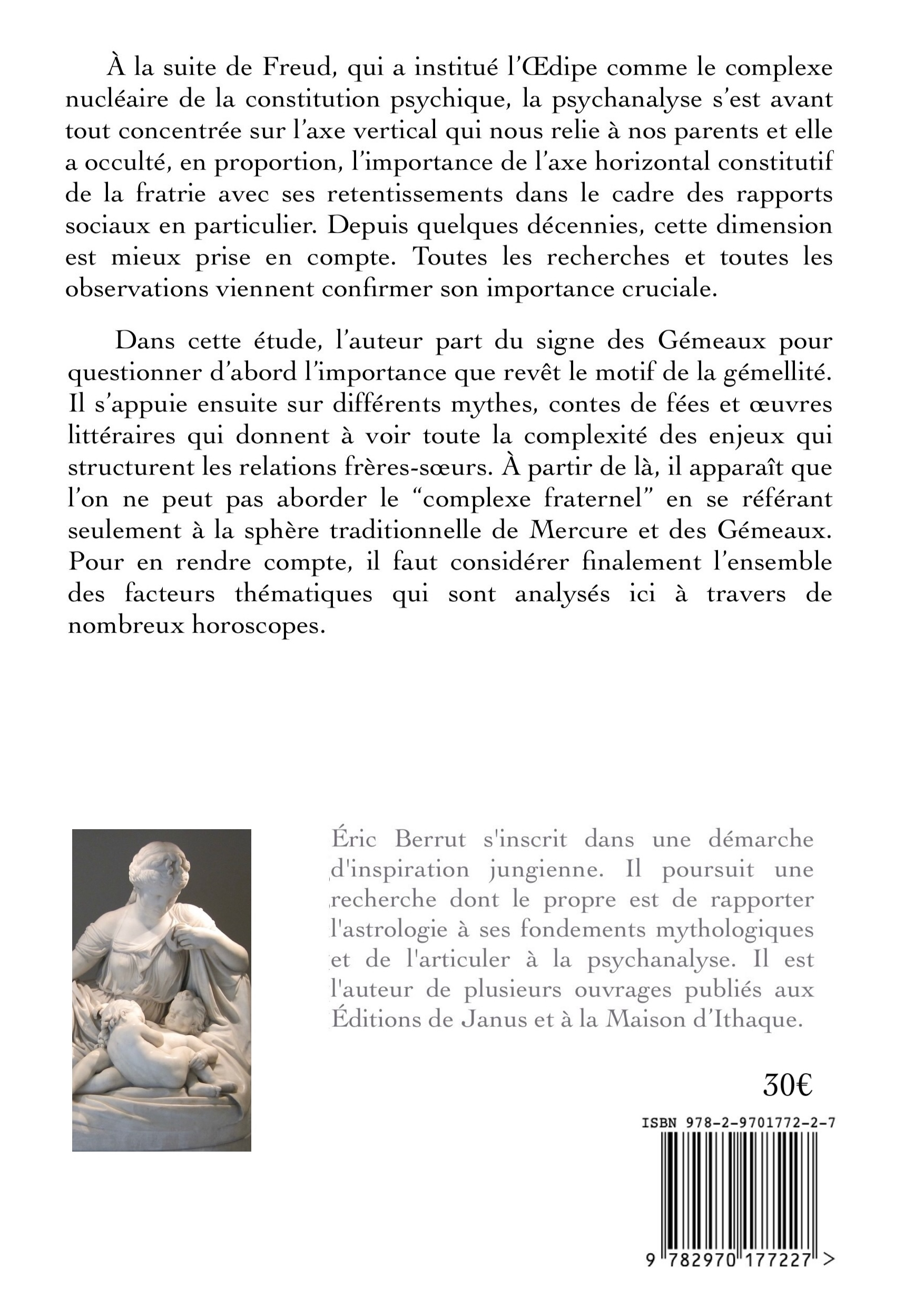 Après avoir questionné le symbolisme des Gémeaux et de la gémellité, l’auteur s’appuie sur différents mythes, contes de fées et œuvres littéraires qui donnent à voir toute la complexité des enjeux qui structurent les relations frères-sœurs. À partir de là, il prend en compte l’ensemble des facteurs astraux qui sont analysés ici à travers de nombreux horoscopes.