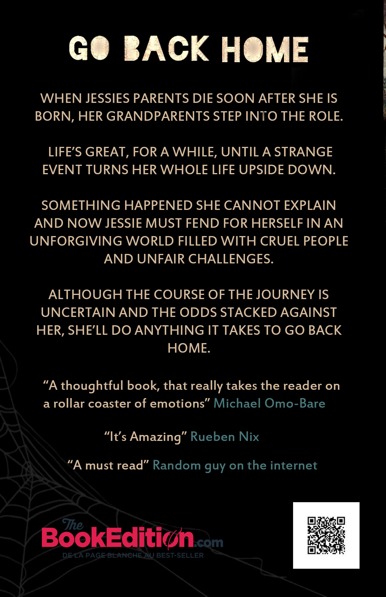 When Jessie's parents' die soon after she is born, her grandparents step into the role. Life's great, for a while, until a strange event turns her whole life upside down. Something happened that she cannot explain and now Jessie must fend for herself in an unforgiving world filled with cruel people and unfair challenges. Although the course of her journey is uncertain and the odds stacked against her, she'll do anything it takes to go back home.