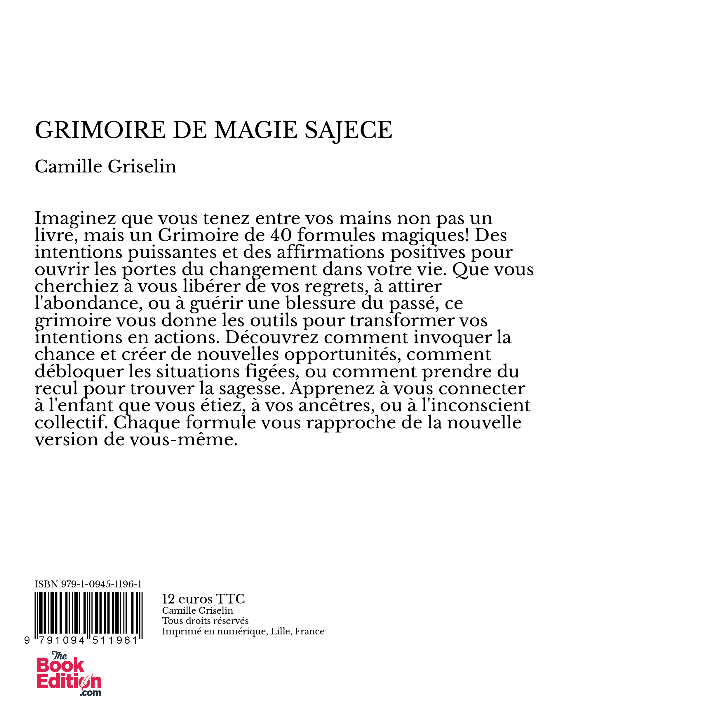 Imaginez que vous tenez entre vos mains non pas un livre, mais un Grimoire de 40 formules magiques! Des intentions puissantes et des affirmations positives pour ouvrir les portes du changement dans votre vie. Que vous cherchiez à vous libérer de vos regrets, à attirer l'abondance, ou à guérir une blessure du passé, ce grimoire vous donne les outils pour transformer vos intentions en actions. Découvrez comment invoquer la chance et créer de nouvelles opportunités, comment débloquer les situations figées, ou comment prendre du recul pour trouver la sagesse. Apprenez à vous connecter à l'enfant que vous étiez, à vos ancêtres, ou à l'inconscient collectif. Chaque formule vous rapproche de la nouvelle version de vous-même.
