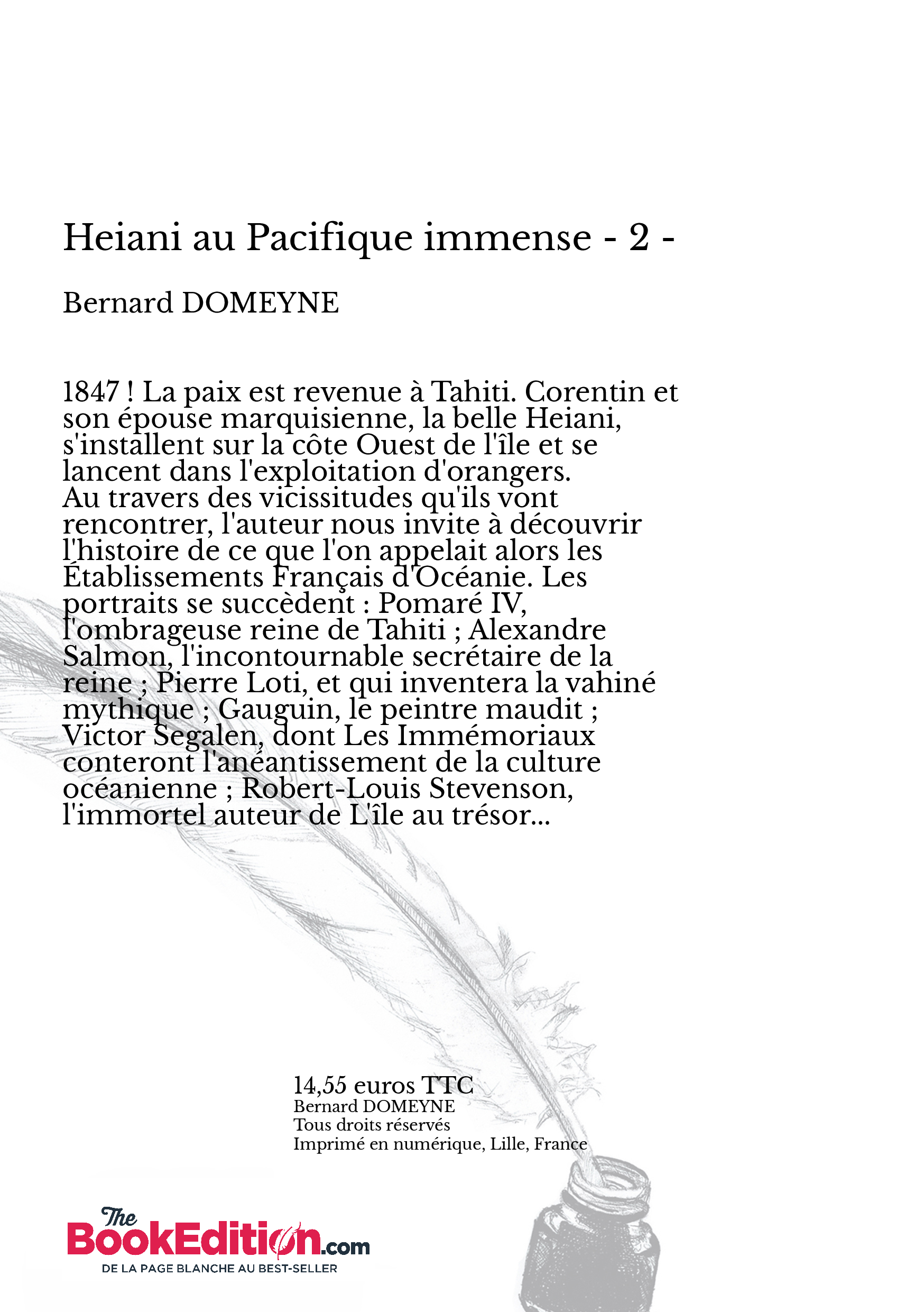 Au travers des vicissitudes qu'ils vont rencontrer, l'auteur nous invite à découvrir l'histoire de ce que l'on appelait alors les Établissements Français d'Océanie. Les portraits se succèdent : Pomaré IV, l'ombrageuse reine de Tahiti ; Alexandre Salmon, l'incontournable secrétaire de la reine ; Pierre Loti, et qui inventera la vahiné mythique ; Gauguin, le peintre maudit ; Victor Segalen, dont Les Immémoriaux conteront l'anéantissement de la culture océanienne ; Robert-Louis Stevenson, l'immortel auteur de L'île au trésor...
