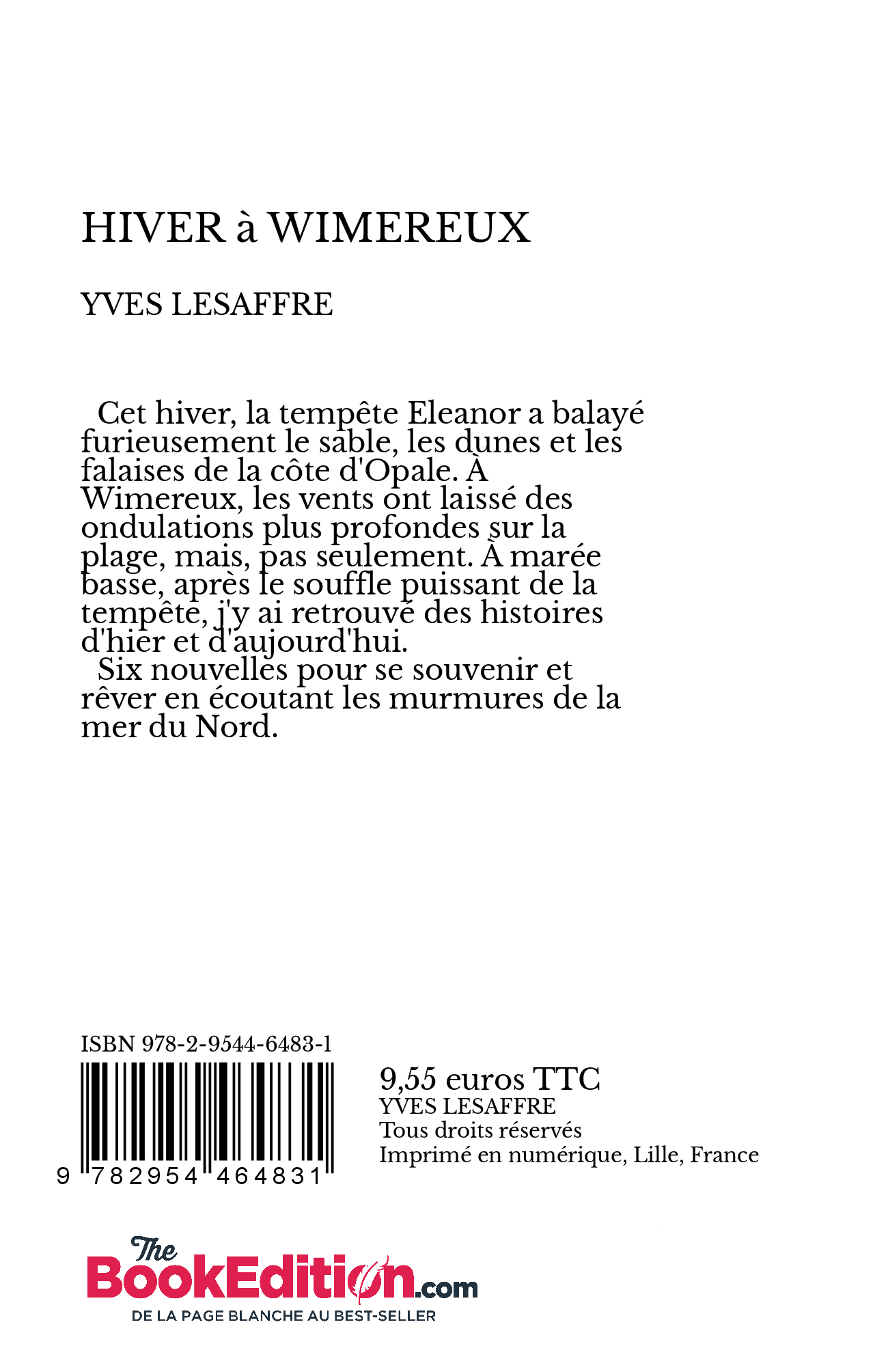 Cet hiver, la tempête Eleanor a balayé furieusement le sable, les dunes et les falaises de la côte d'Opale. À Wimereux, les vents ont laissé des ondulations plus profondes sur la plage, mais, pas seulement. À marée basse, après le souffle puissant de la tempête, j'y ai retrouvé des histoires d'hier et d'aujourd'hui. Six nouvelles pour se souvenir et rêver en écoutant les murmures de la mer du Nord.