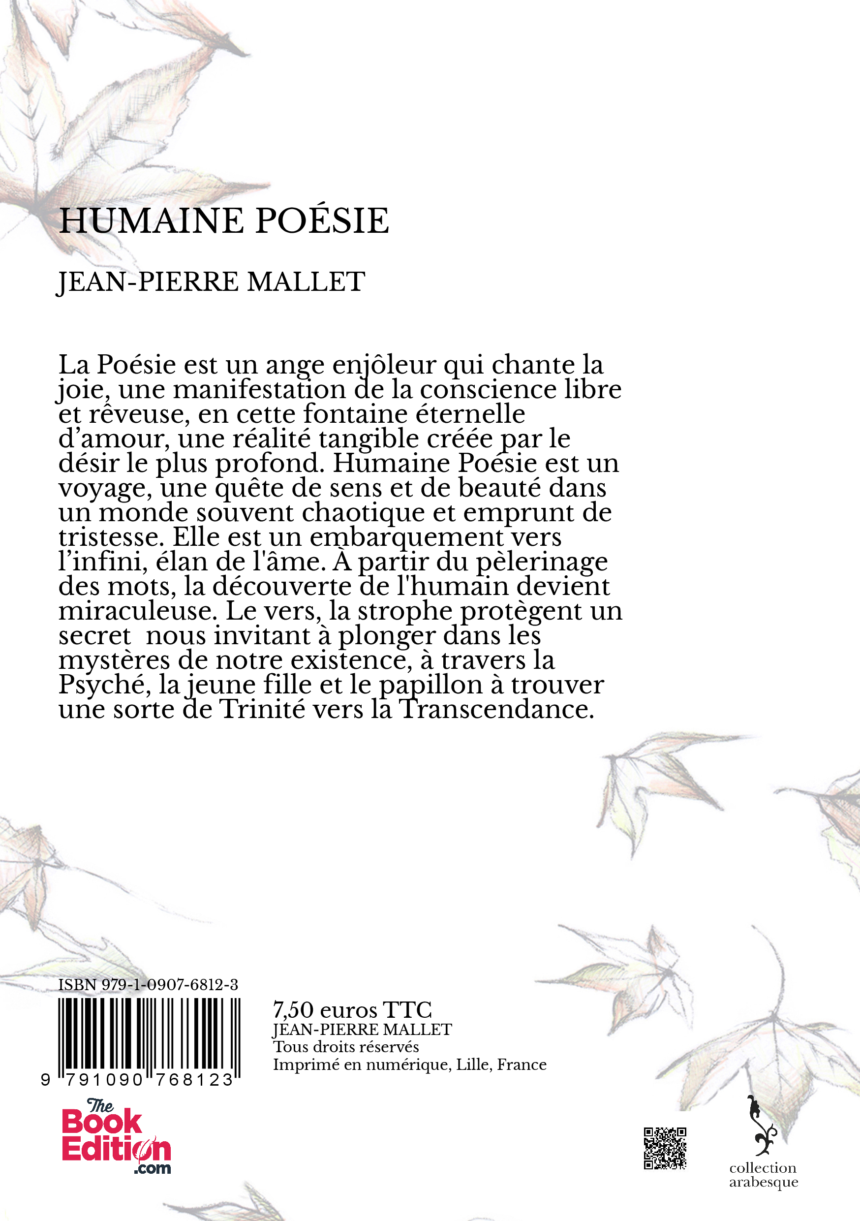La Poésie est un ange enjôleur qui chante la joie, une manifestation de la conscience libre et rêveuse, en cette fontaine éternelle d’amour, une réalité tangible créée par le désir le plus profond. Humaine Poésie est un voyage, une quête de sens et de beauté dans un monde souvent chaotique et emprunt de tristesse. Elle est un embarquement vers l’infini, chemin de l'âme. Au-delà des mots, nous découvrons l'humain avec toutes ses contradictions et ses merveilles. Chaque vers et chaque strophe protègent un secret, une énigme nous invitant à plonger dans les mystères de notre existence, à travers la Psyché, la jeune fille et le papillon à trouver une sorte de Trinité vers la Transcendance.