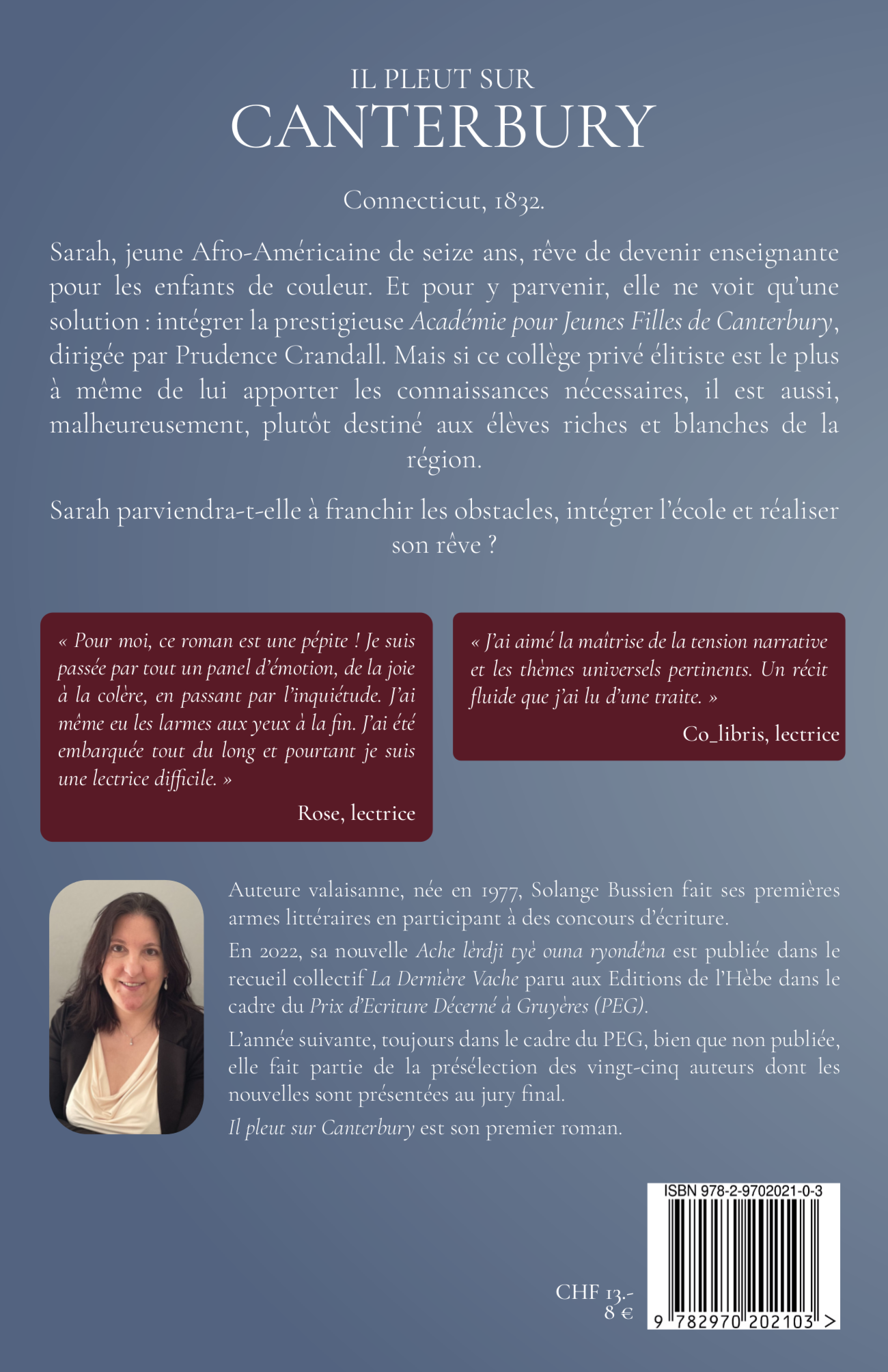 Sarah, jeune Afro-Américaine de seize ans, rêve de devenir enseignante pour les enfants de couleur. Et pour y parvenir, elle ne voit qu’une solution : intégrer la prestigieuse Académie pour Jeunes Filles de Canterbury, dirigée par Prudence Crandall. Mais si ce collège privé élitiste est le plus à même de lui apporter les connaissances nécessaires, il est aussi, malheureusement, plutôt destiné aux élèves riches et blanches de la région.