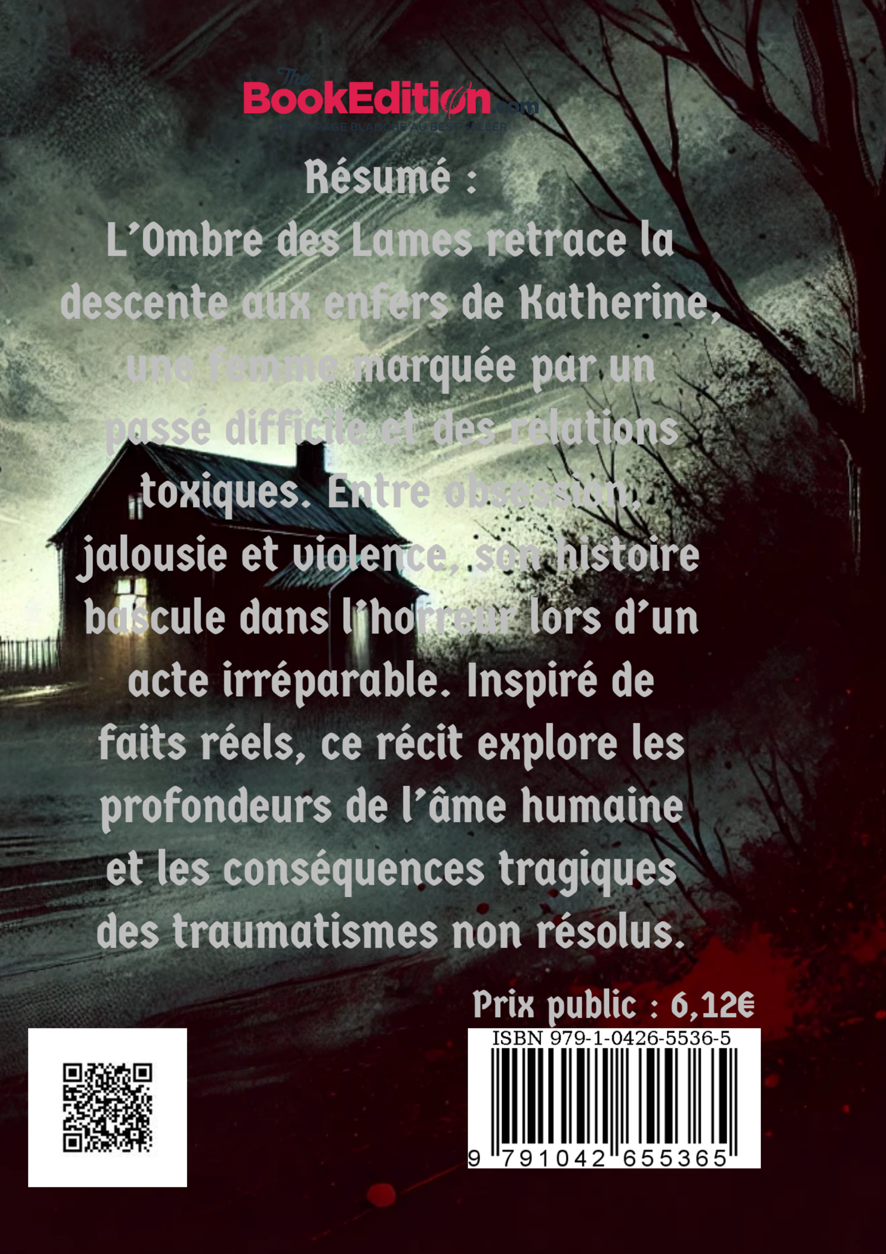 Résumé : L’Ombre des Lames retrace la descente aux enfers de Katherine, une femme marquée par un passé difficile et des relations toxiques. Entre obsession, jalousie et violence, son histoire bascule dans l’horreur lors d’un acte irréparable. Inspiré de faits réels, ce récit explore les profondeurs de l’âme humaine et les conséquences tragiques des traumatismes non résolus.