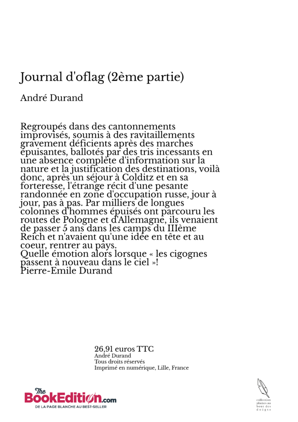Regroupés dans des cantonnements improvisés, soumis à des ravitaillements gravement déficients après des marches épuisantes, ballotés par des tris incessants en une absence complète d'information sur la nature et la justification des destinations, voilà donc, après un séjour à Colditz et en sa forteresse, l'étrange récit d'une pesante randonnée en zone d'occupation russe, jour à jour, pas à pas. Par milliers de longues colonnes d'hommes épuisés ont parcouru les routes de Pologne et d'Allemagne, ils venaient de passer 5 ans dans les camps du IIIème Reich et n'avaient qu'une idée en tête et au coeur, rentrer au pays.