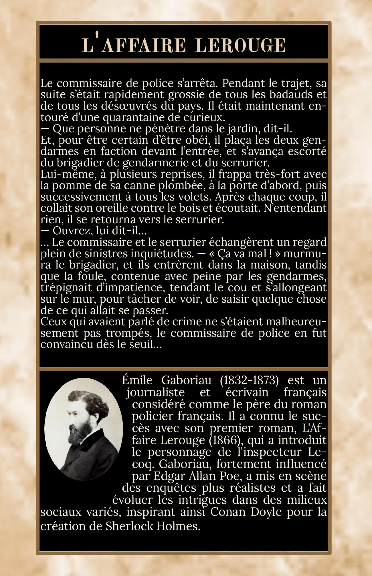 Il plaça deux gendarmes en faction devant l’entrée, et s’avança escorté du brigadier de gendarmerie et du serrurier.