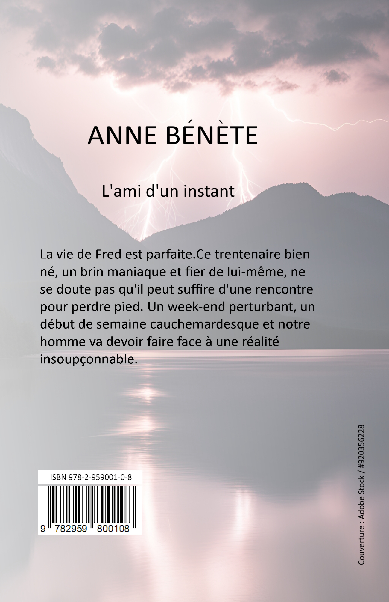 Anne Bénète est née à Paris et séjourne actuellement en Normandie. Sa passion pour l 'écriture s'est éveillée en elle comme une évidence avec son premier roman : L'ami d'un instant. Thriller traitant de la fragilité humaine et de ses conséquences. Son deuxième manuscrit est en correction et un troisième est en cours d'écriture. Suivez Anne Bénète sur Instagram : @anne_benete