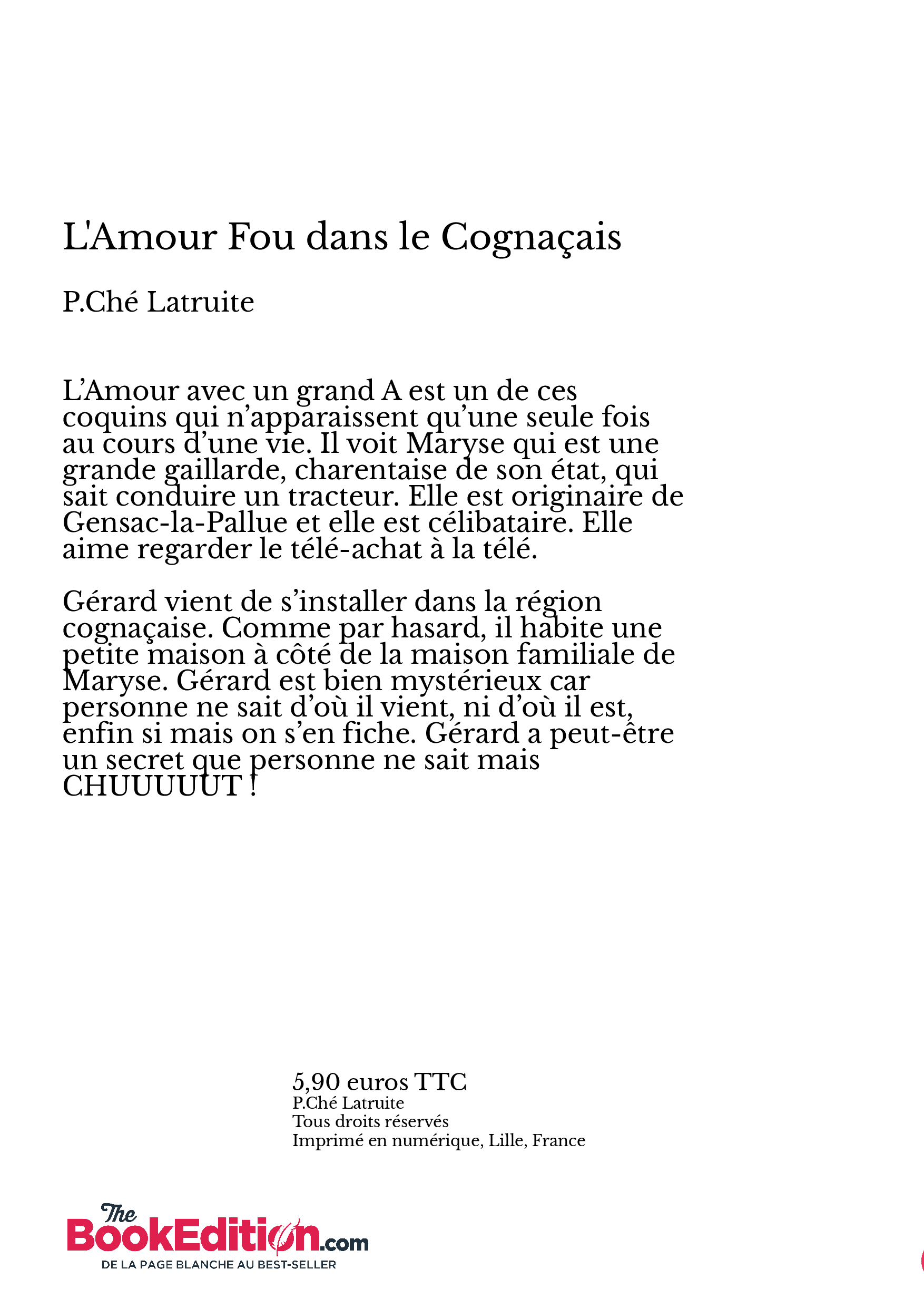 Gérard vient de s’installer dans la région cognaçaise. Comme par hasard, il habite une petite maison à côté de la maison familiale de Maryse. Gérard est bien mystérieux car personne ne sait d’où il vient, ni d’où il est, enfin si mais on s’en fiche. Gérard a peut-être un secret que personne ne sait mais CHUUUUUT !