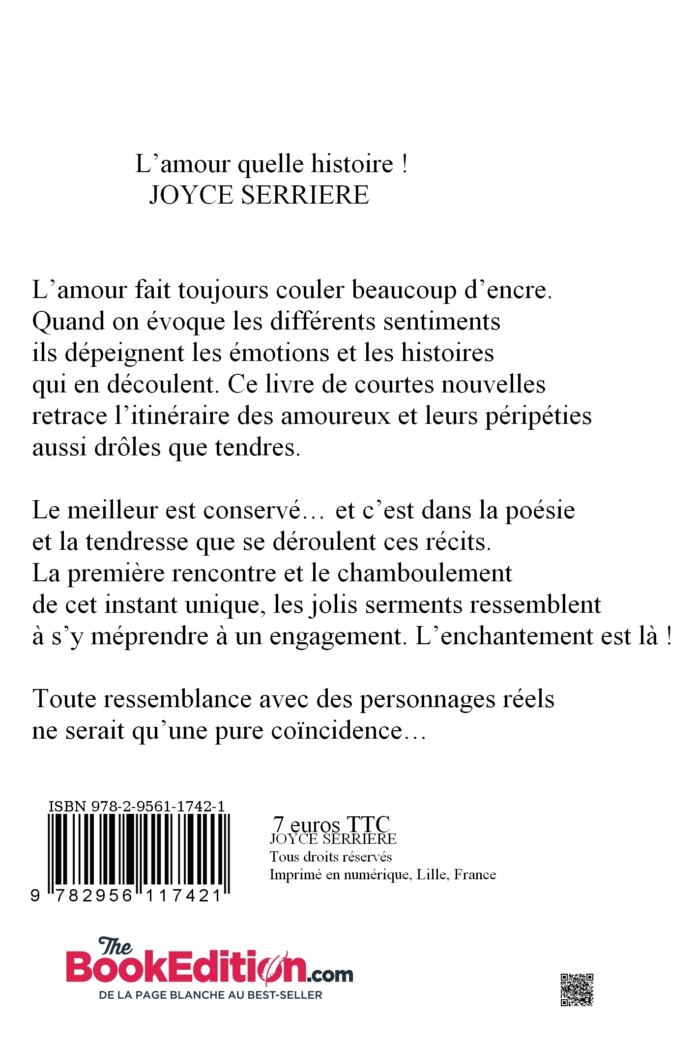 L’amour fait toujours couler beaucoup d’encre. Quand on évoque les différents sentiments ils dépeignent les émotions et les histoires qui en découlent. Ce livre de courtes nouvelles retrace l’itinéraire des amoureux et leurs péripéties aussi drôles que tendres.