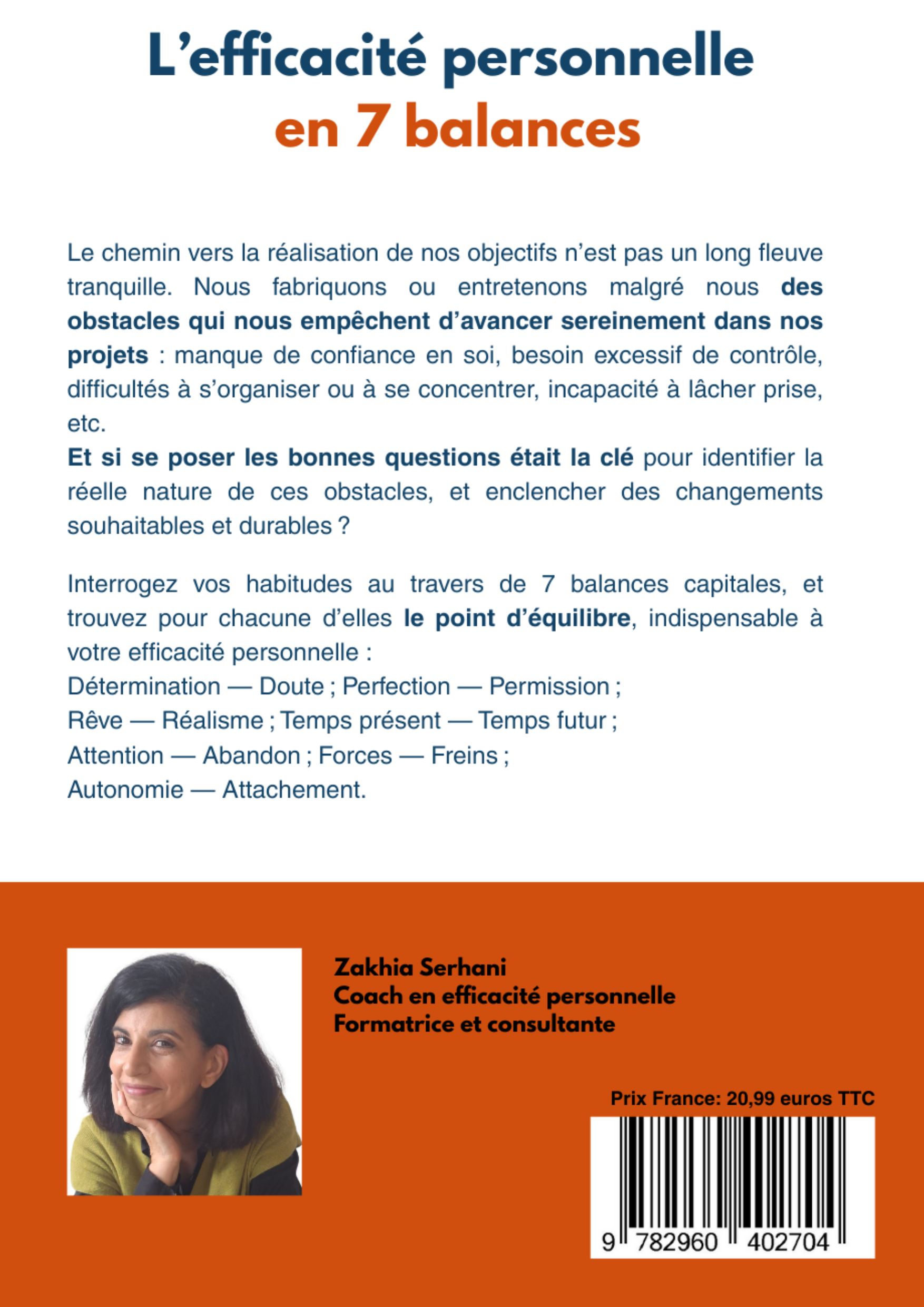 Interrogez vos habitudes au travers de 7 balances capitales, et trouvez pour chacune d’elles le point d’équilibre, indispensable à votre efficacité personnelle. Devenez pilote de votre changement et votre propre coach.
