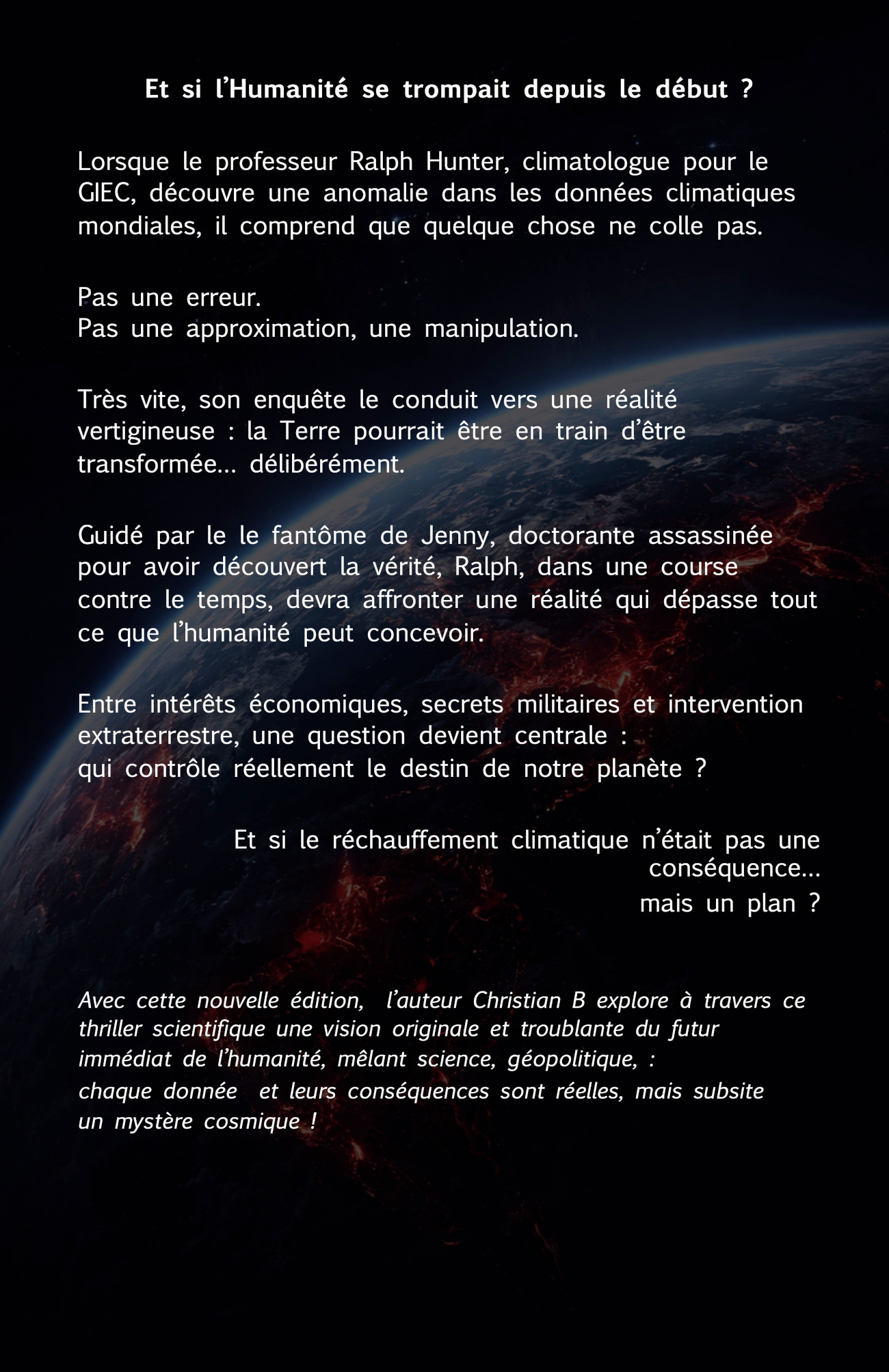 Ralph découvre alors l’impensable : une guerre climatique silencieuse, dont l’enjeu ultime serait la possession de la Terre et l’élimination de l’humanité, simple exécutante inconsciente d’un projet qu’elle n’a jamais conçu !