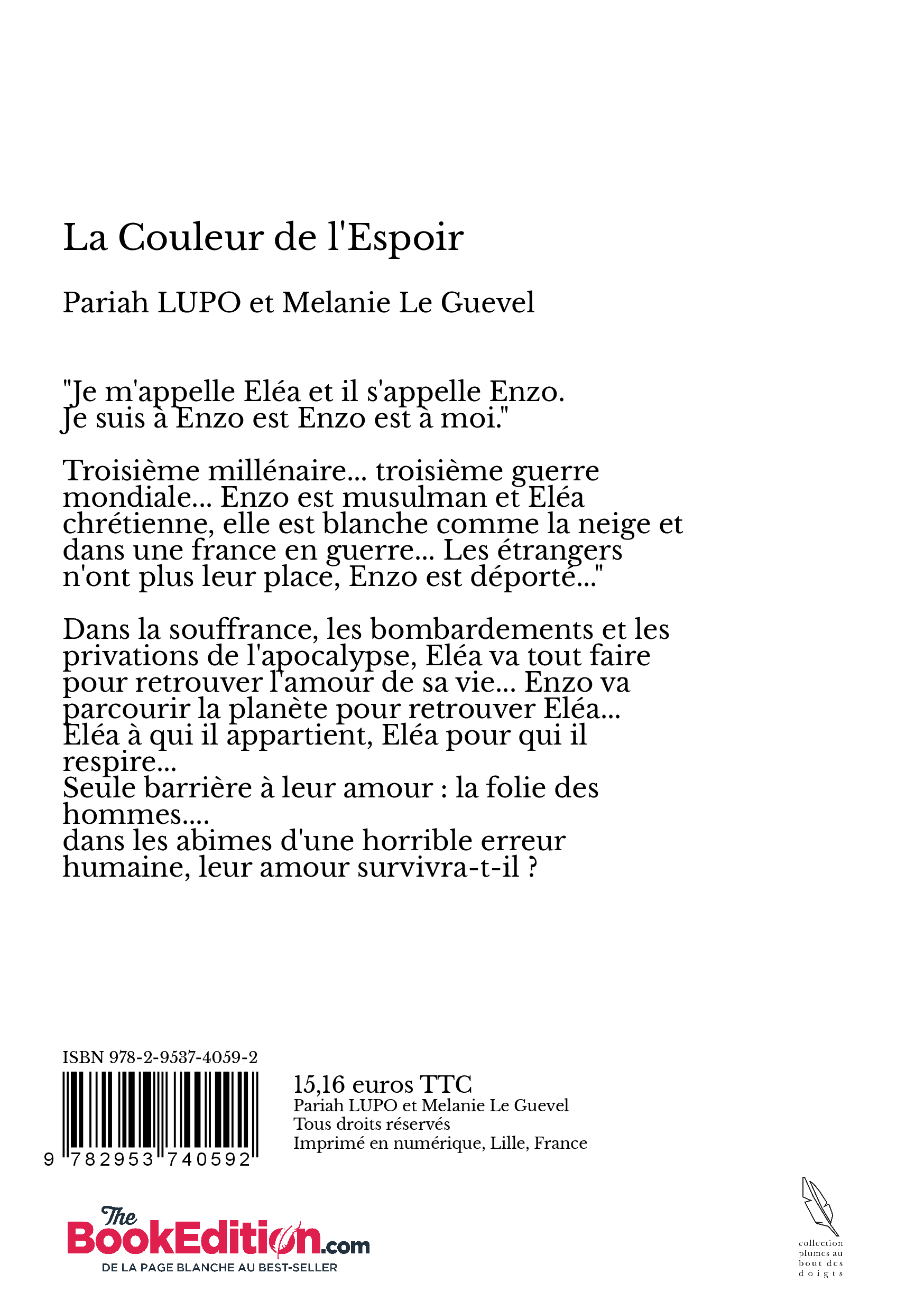 Un livre intéressant, bien écrit et avec deux personnages principaux attachants. Ecrit par deux auteurs différents rend le livre plus mystérieux et on découvre ainsi deux styles à part, l'un de l'autre. Un peu long par moment, mais l'histoire est prenante tout le long, beaucoup d'émotion.