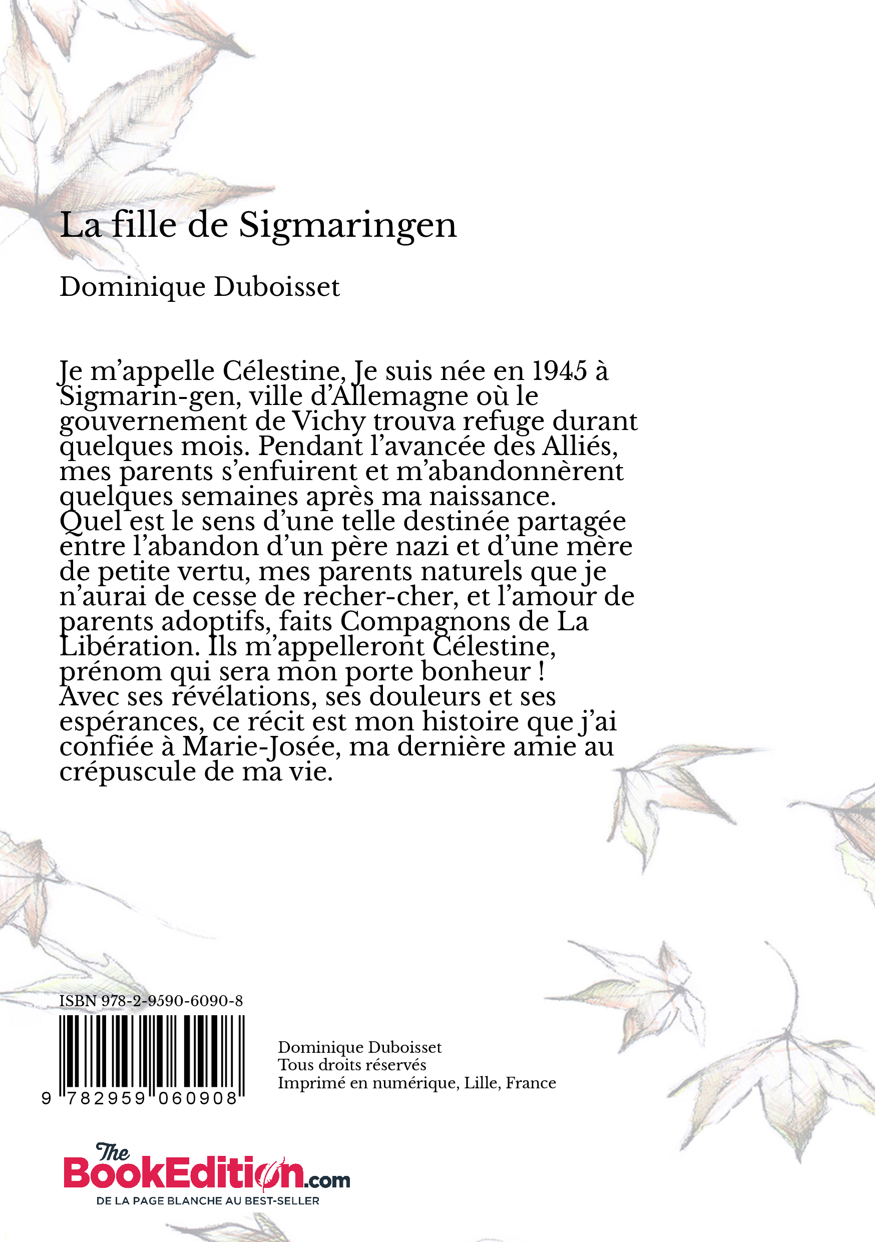 Quel est le sens d’une telle destinée partagée entre l’abandon d’un père nazi et d’une mère de petite vertu, mes parents naturels que je n’aurai de cesse de recher-cher, et l’amour de parents adoptifs, faits Compagnons de La Libération. Ils m’appelleront Célestine, prénom qui sera mon porte bonheur !