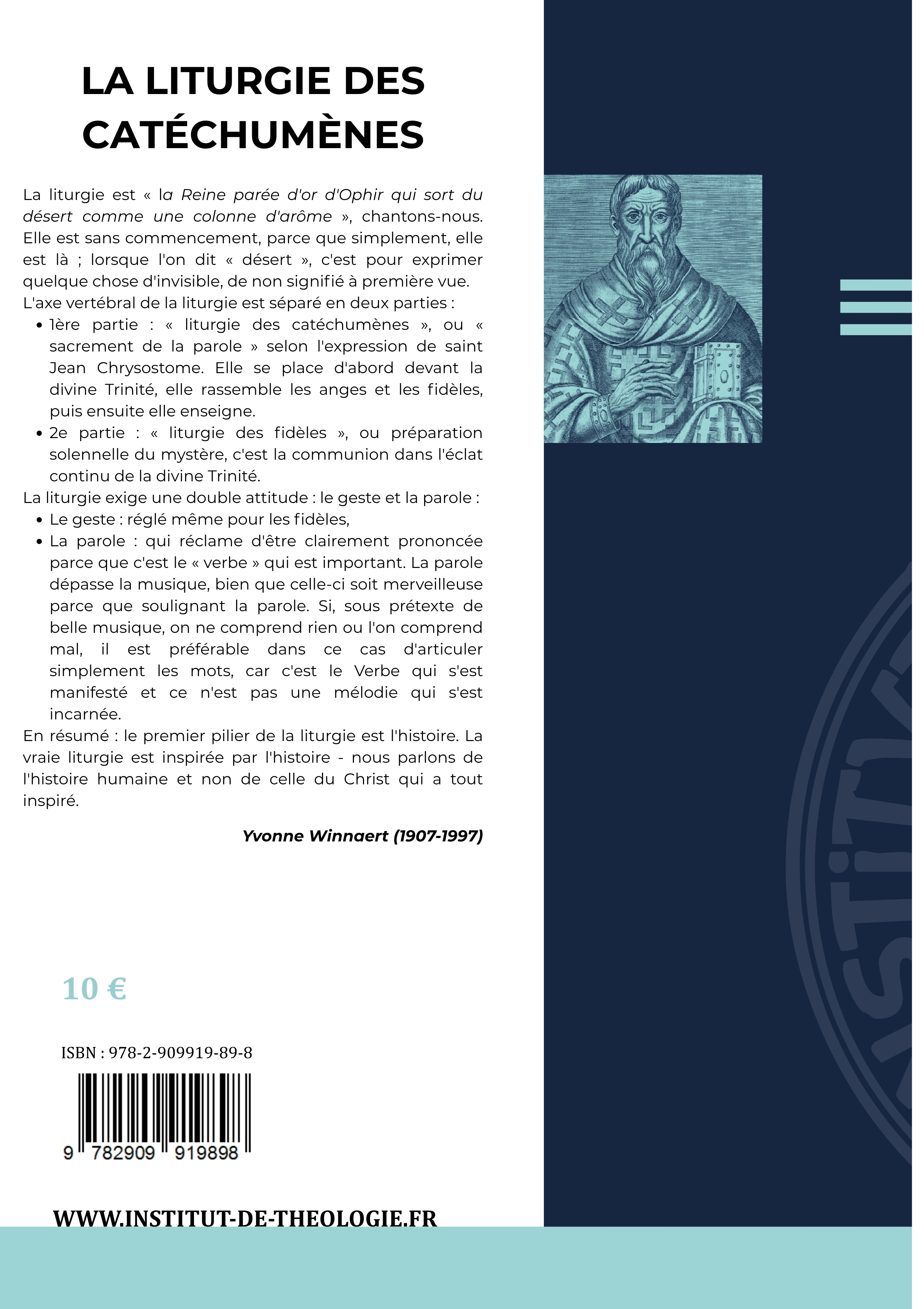- 1re partie : « liturgie des catéchumènes », ou « sacrement de la parole » selon l'expression de saint Jean Chrysostome. Elle se place d'abord devant la divine Trinité, elle rassemble les anges et les fidèles, puis ensuite elle enseigne.