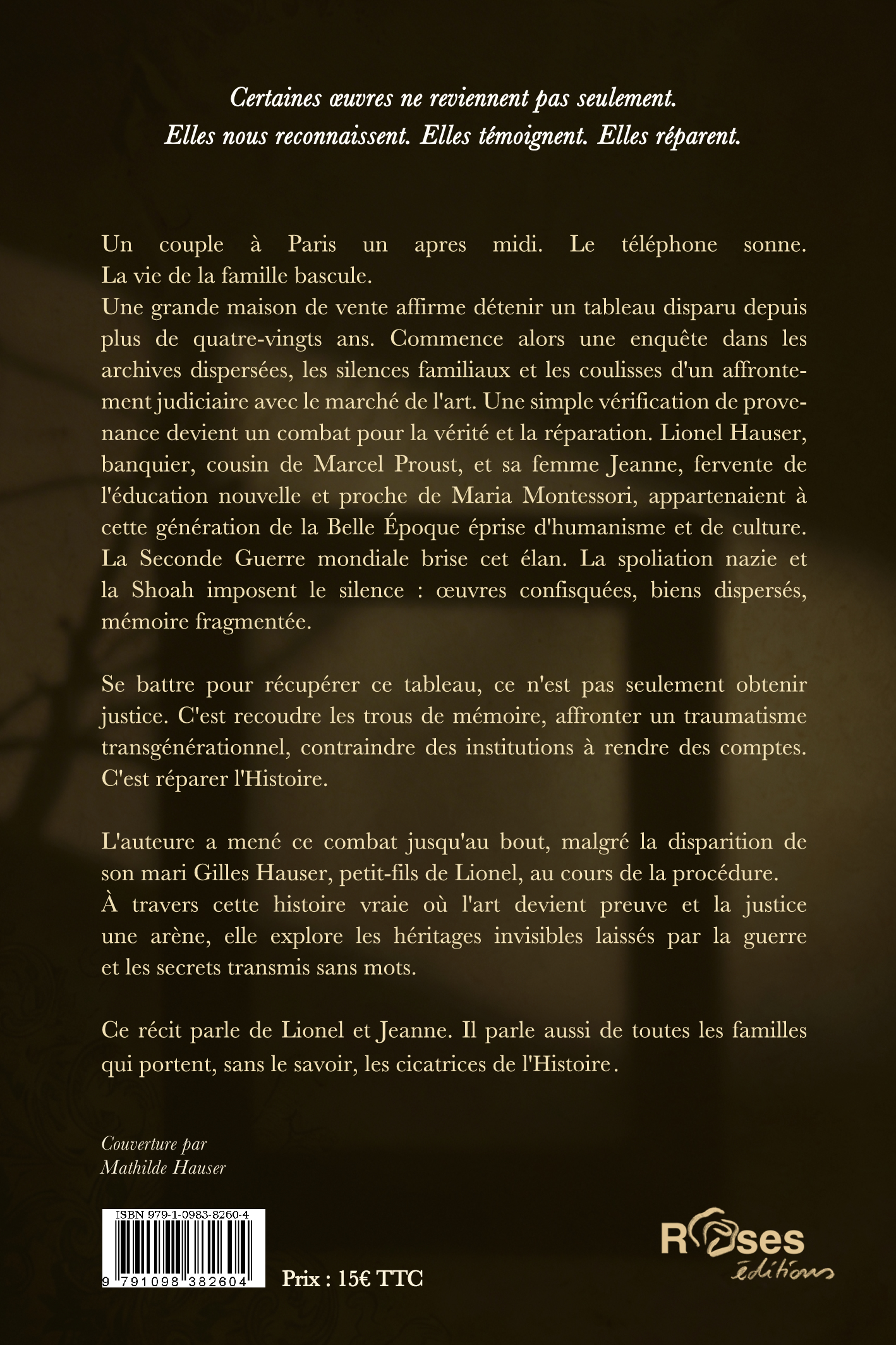 Thriller historico-judiciaire passionnant par Gilberte Caron Hauser qui révèle l'envergure de la spoliation des oeuvres d'art pendant la Seconde Guerre mondiale.