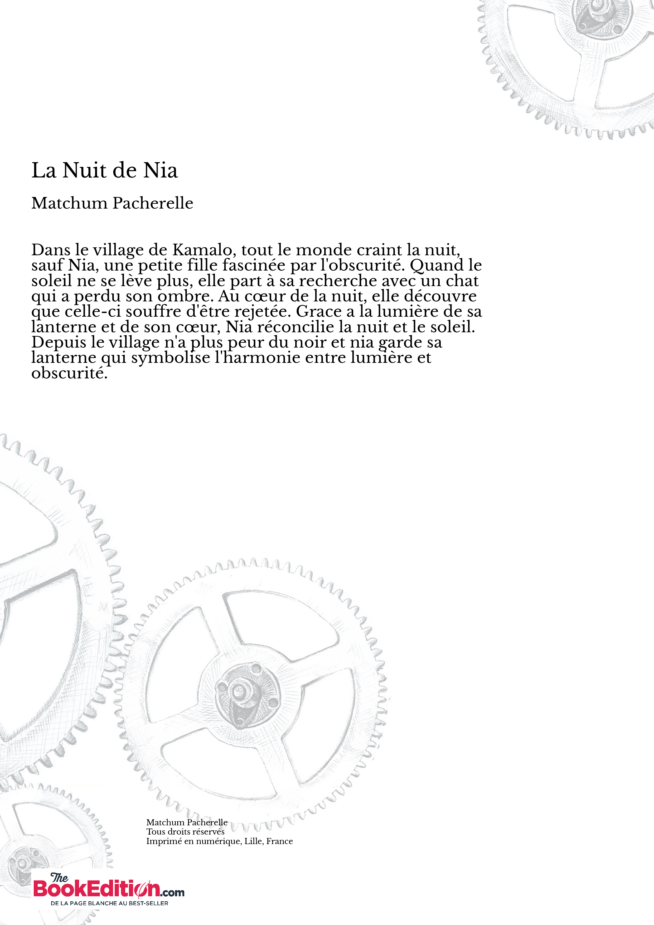 Dans le village de Kamalo, tout le monde craint la nuit, sauf Nia, une petite fille fascinée par l'obscurité. Quand le soleil ne se lève plus, elle part à sa recherche avec un chat qui a perdu son ombre. Au cœur de la nuit, elle découvre que celle-ci souffre d'être rejetée. Grace a la lumière de sa lanterne et de son cœur, Nia réconcilie la nuit et le soleil. Depuis le village n'a plus peur du noir et nia garde sa lanterne qui symbolise l'harmonie entre lumière et obscurité.