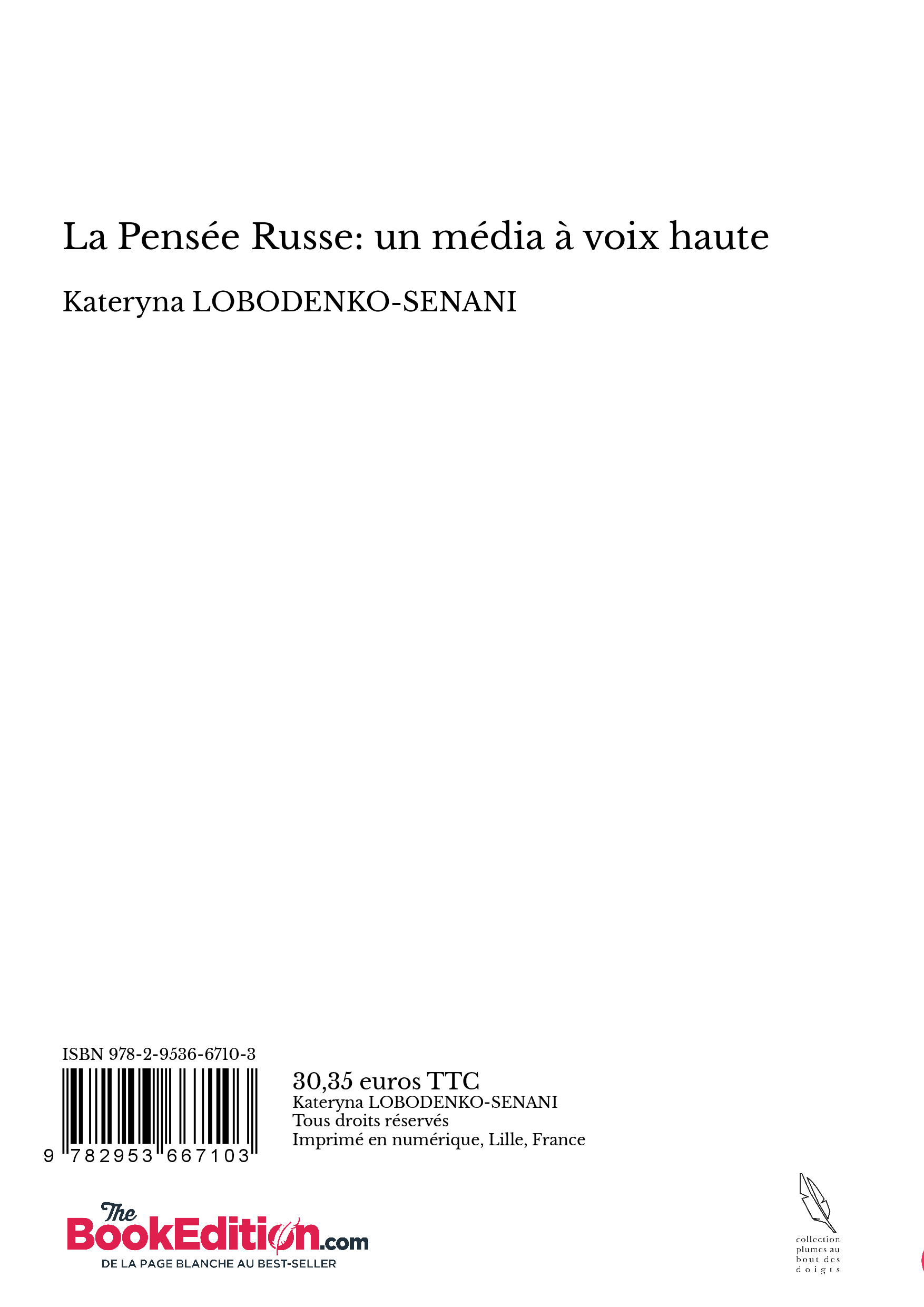 Cet ouvrage évoque la première trentaine (1947 ' 1977) de l'histoire du journal minoritaire La Pensée Russe, le plus connu et le plus diffusé dans la communauté russophone en France. L'auteur aborde le problème d'émigration des Slaves vers les pays d'Europe de l'Ouest, en particulier, vers la France, et le phénomène de la presse écrite russophone à l'Hexagone. Son objectif est de découvrir, à partir de cette presse, l'apport des médias minoritaires dans la naissance d'une communauté diasporique et le rôle du journal La Pensée Russe dans la vie de la communauté slave. La rédaction de ce périodique réunit les esprits éminents de l'émigration slave tels que Nina Berberova, Georges Adamovitch, Piotr Kovalevski, Boris Zaitsev '