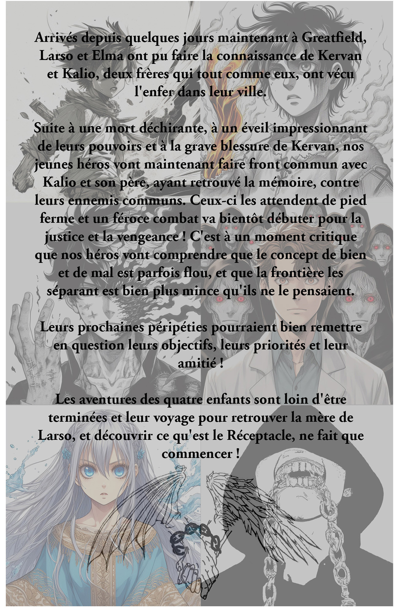 Les aventures des quatre enfants sont loin d'être terminées et leur voyage pour retrouver la mère de Larso, et découvrir ce qu'est le réceptacle, ne fait que commencer !