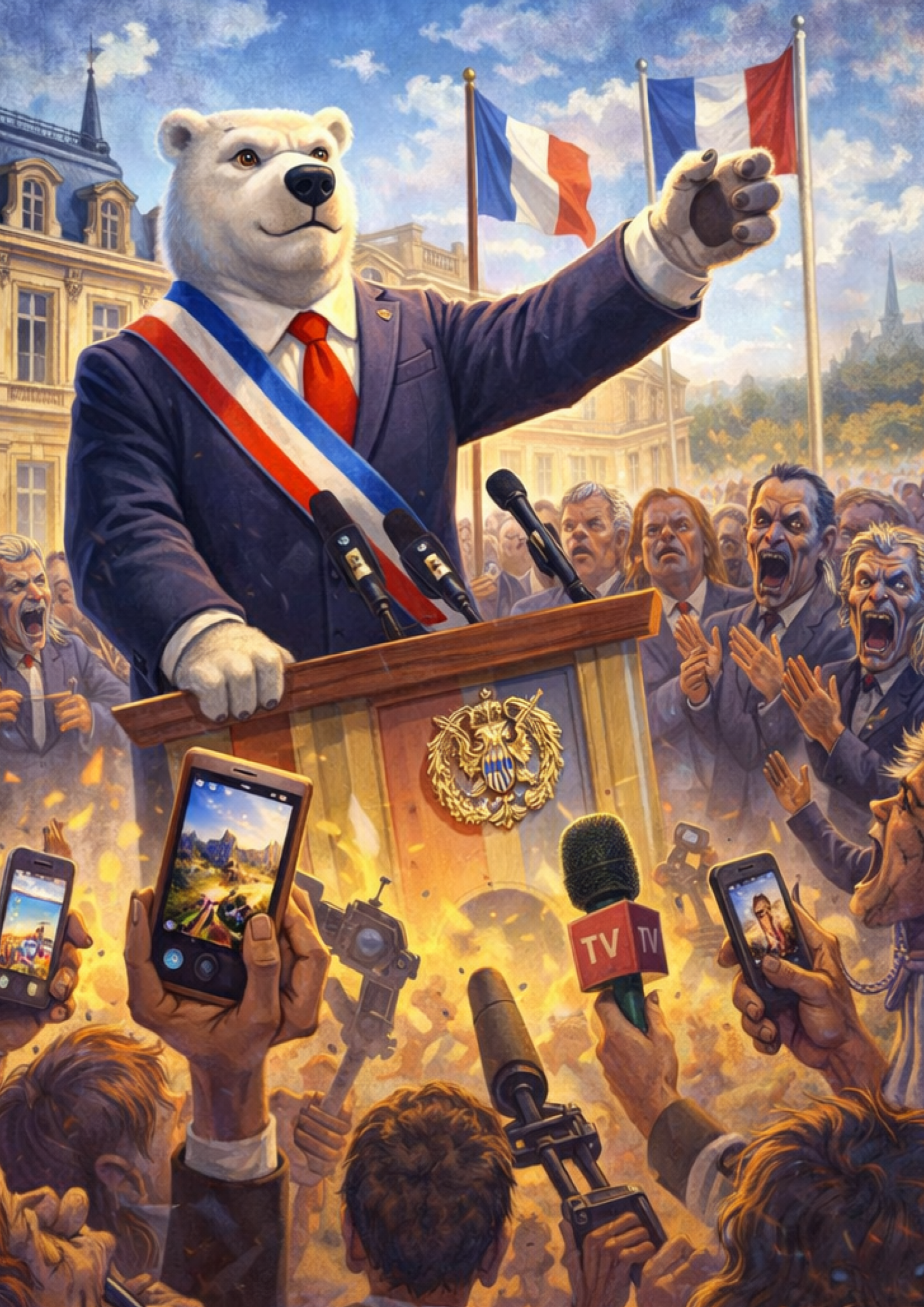 Par une suite d’événements aussi absurdes qu’inévitables, un ours cycliste se retrouve propulsé au sommet de l’État. Élysée, discours officiels, décisions absurdes et silences plus éloquents que les promesses : la République bascule dans une mécanique déréglée où le néant a sa propre cohérence.